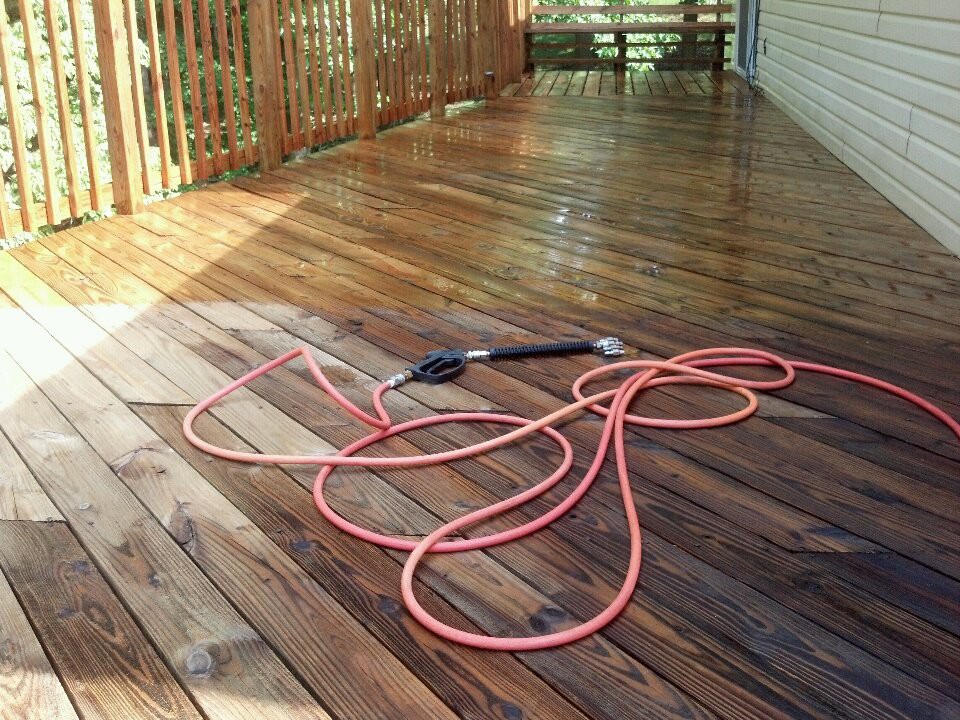 This is a pic of a deck we either stripped or cleaned, then the brightener, ox acid. This was a couple years ago.