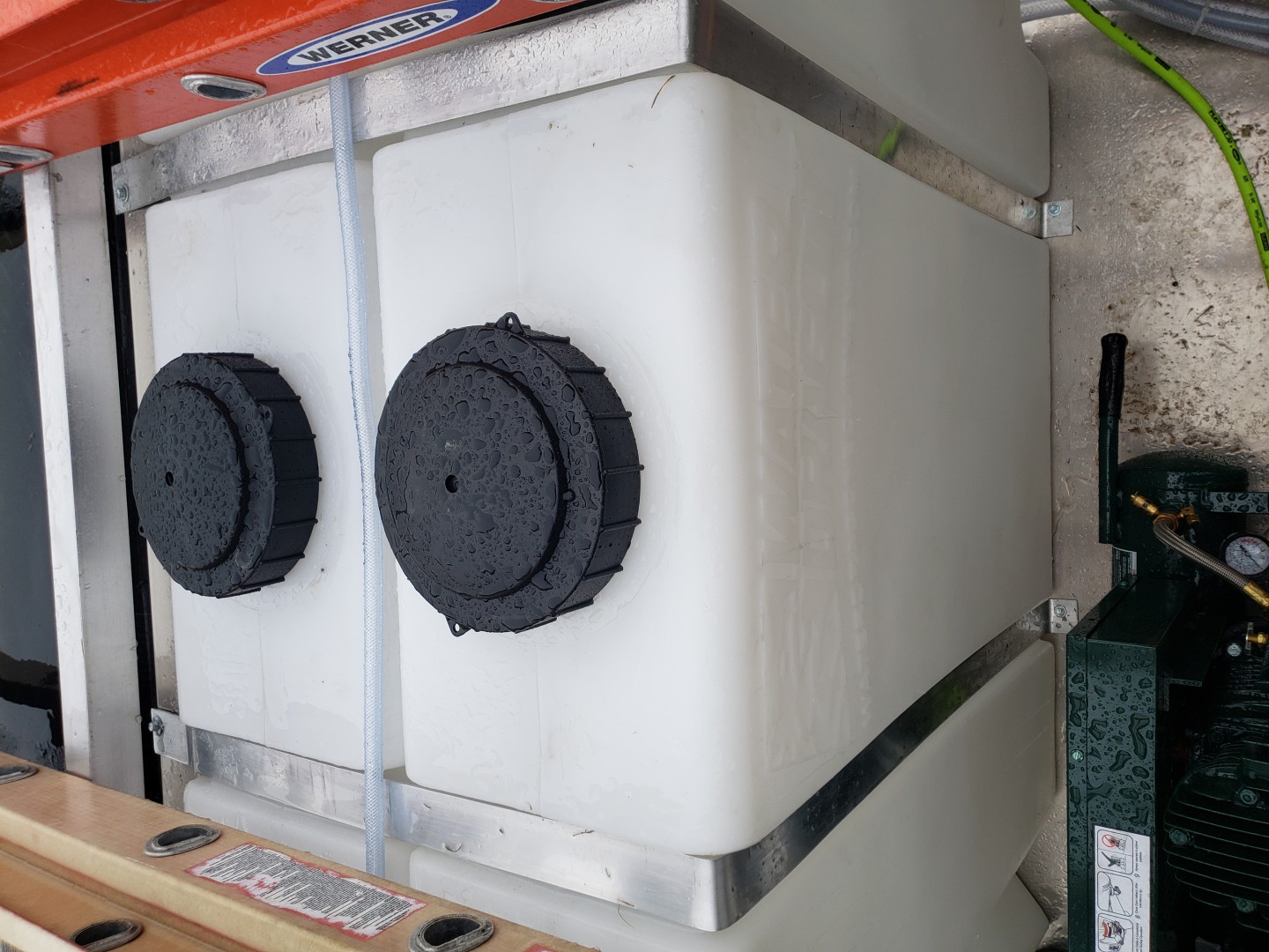 It started raining so I was rushing but got the straps done. Going to pull them back off, add 2 fasteners at each spot (in stainless) and trim sa d the rough edges. $42 in parts and about 45 minutes. Sure beats the $250 each that is available w the tank.