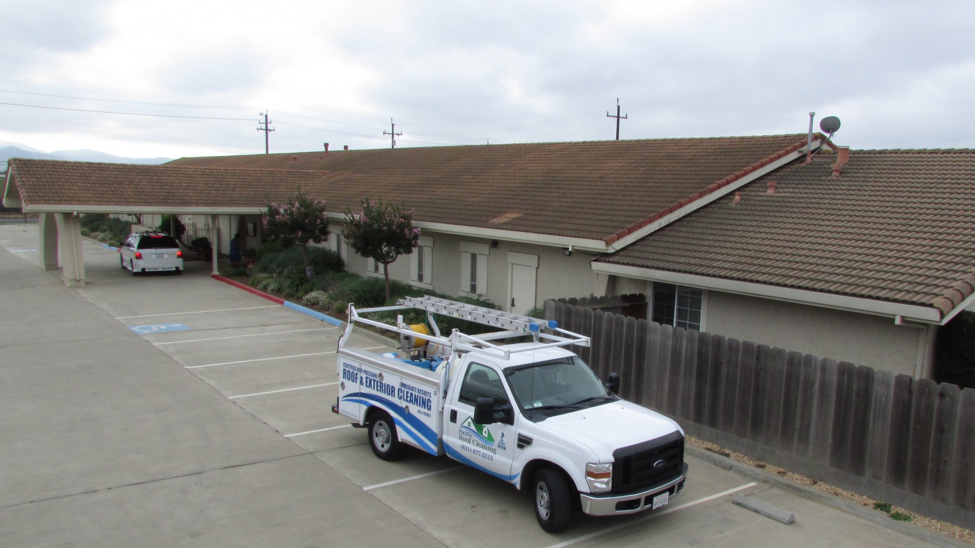 What do you think of my big tile roof cleaning fellas? 15,000 sq ft. I sure wish I had thought of walking up the overpass for the before photo as well.