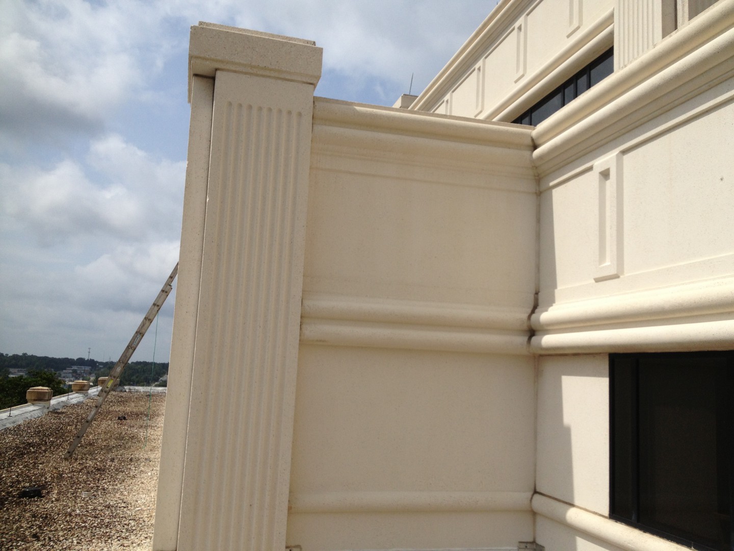 On this job, we gave a freshwater washdown of the windows with the booster pump, and they were happy with the results. Taped the hose to a 20' extension pole then that pole to a 15' extension pole and washed from the top down for the top three stories, and from ground or lower roof areas for the other windows.