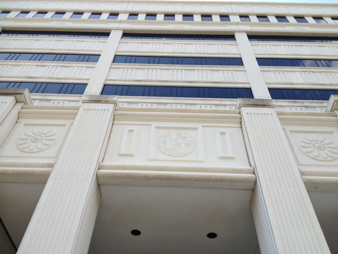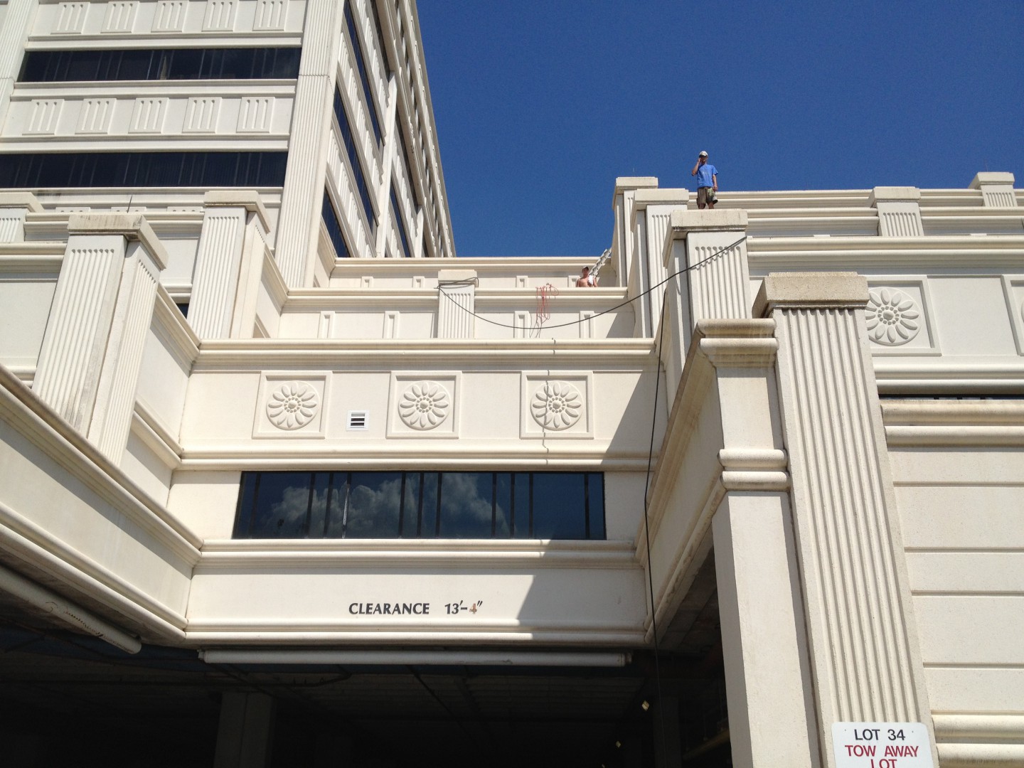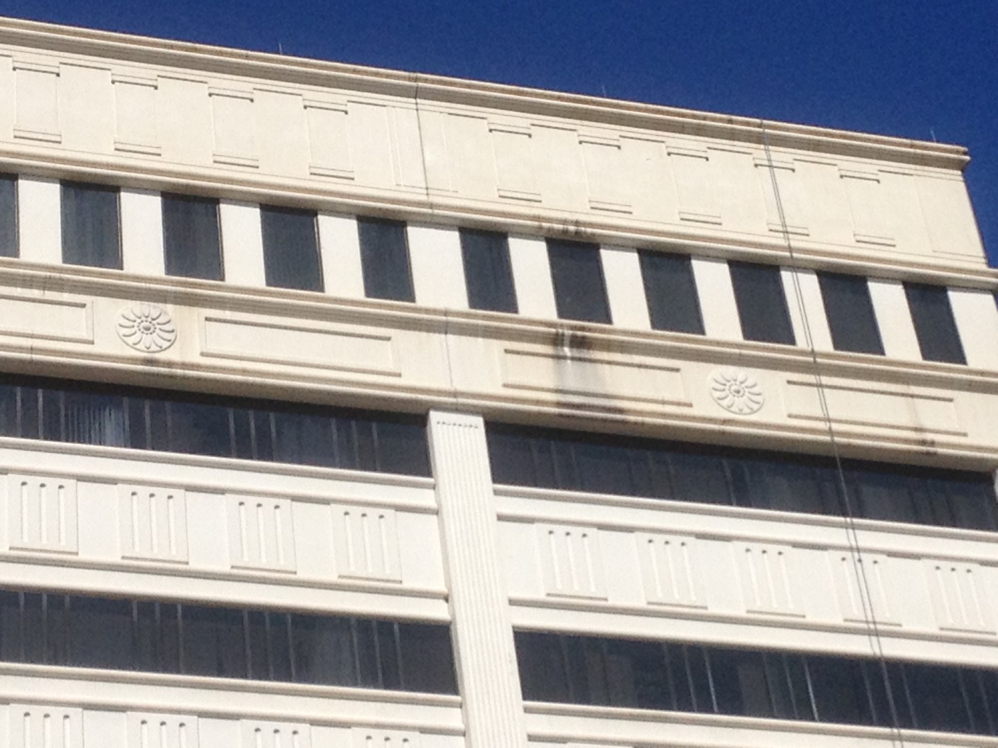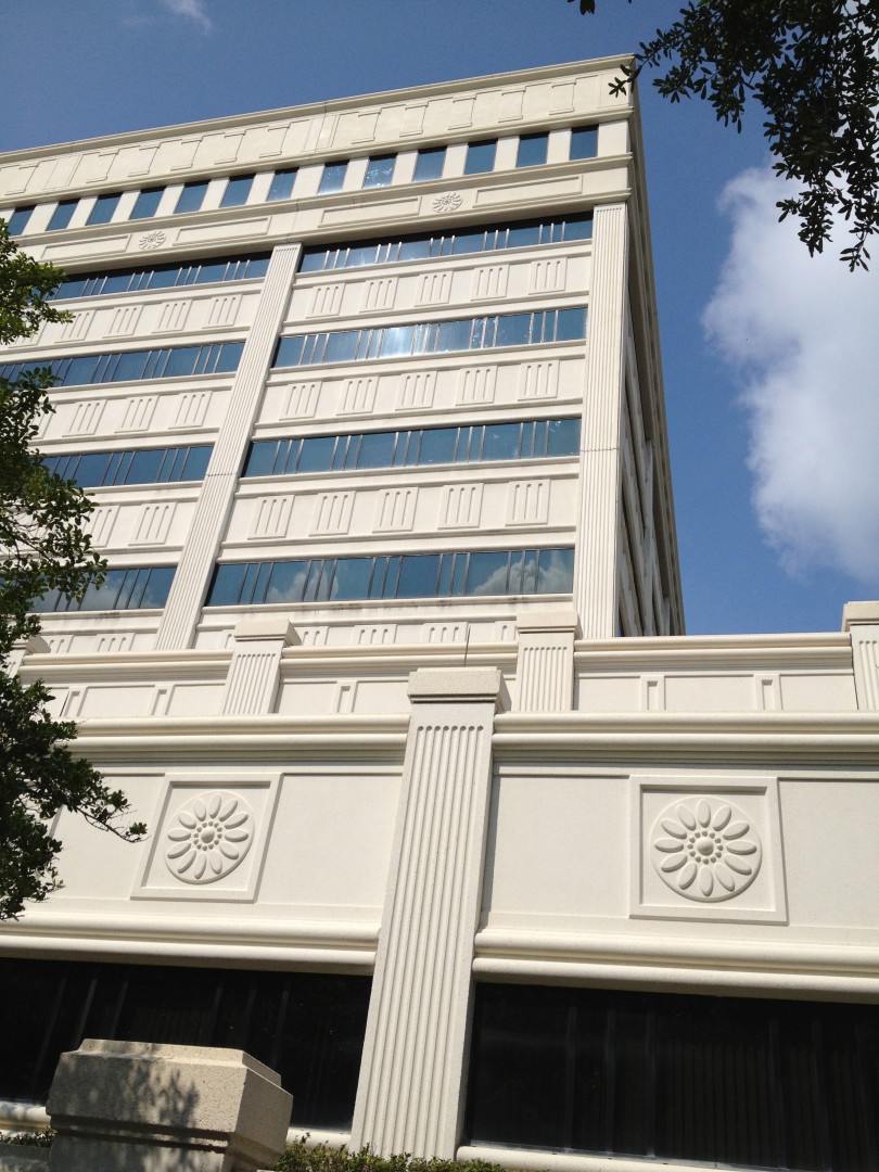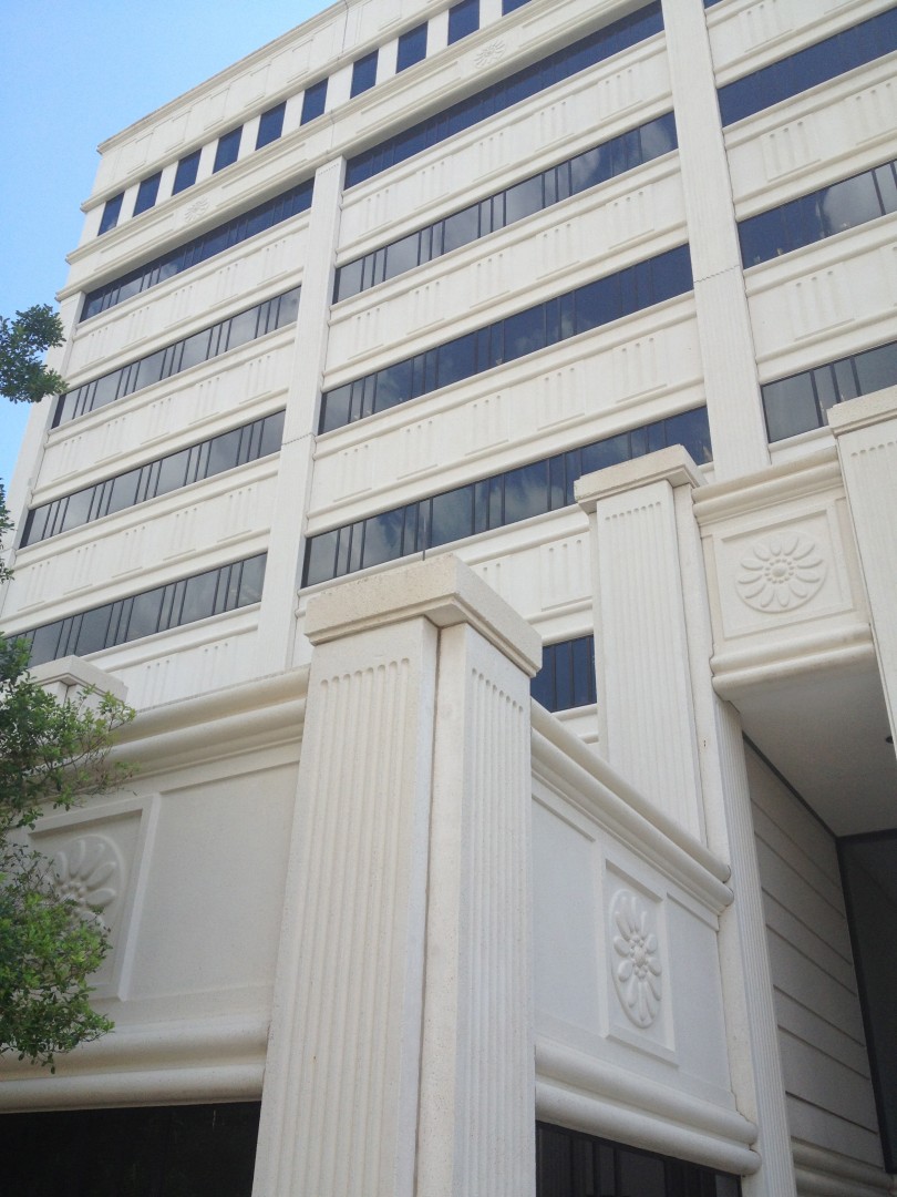 Spray Wash just finished this monstrosity, the Claude Pepper Building. Its located on a whole city block, so its a big one. Technically its 13 stories from lower parking deck to penthouse equipment area. Project too 20 days to clean, and during that time, we never cranked up a pressure washer! Everything was softwashed with our Dayton Booster Pumps. Used a 20% and Greenwash mixture, bustling is all precast and white concrete.