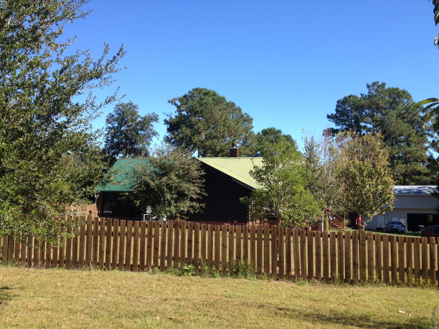 Came across this job today. Its a 12 year old metal roof, green in color. The house has an addition on the left hand side that shows the color of the roof and newer metal that is still the original color. The light, puke green color is oxidation. There is still plenty of color left under the this, just need an effective and timely way to remove it.