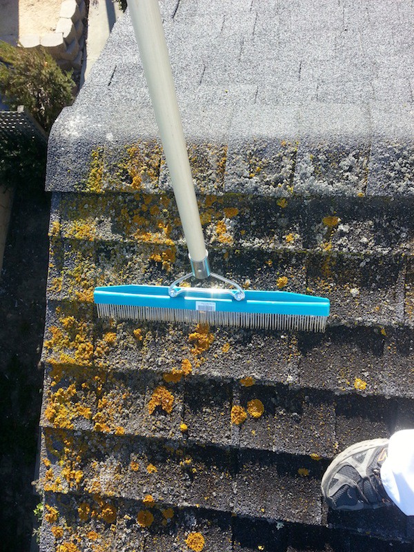 I also use this to remove leaves from valleys on roofs that are un-walkable and roofs that are walkable, it's pretty handy to brush off gutter guards. Whole set up is about $40.