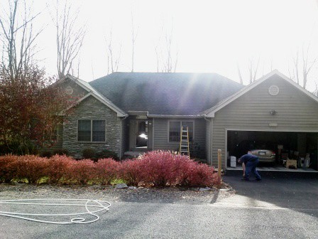 Pocono Non-Pressure Roof & Exterior Cleaning was recently contacted by the new owners of this lovely home in the Shawnee Valley community of East Stroudsburg, PA 18356 to provide advice on roof cleaning. The new owners wanted to improve the curb appeal of the home, add years to the life of the roof shingles, cut down on energy costs and eliminate any potential health hazards the black algae on the roof might cause.