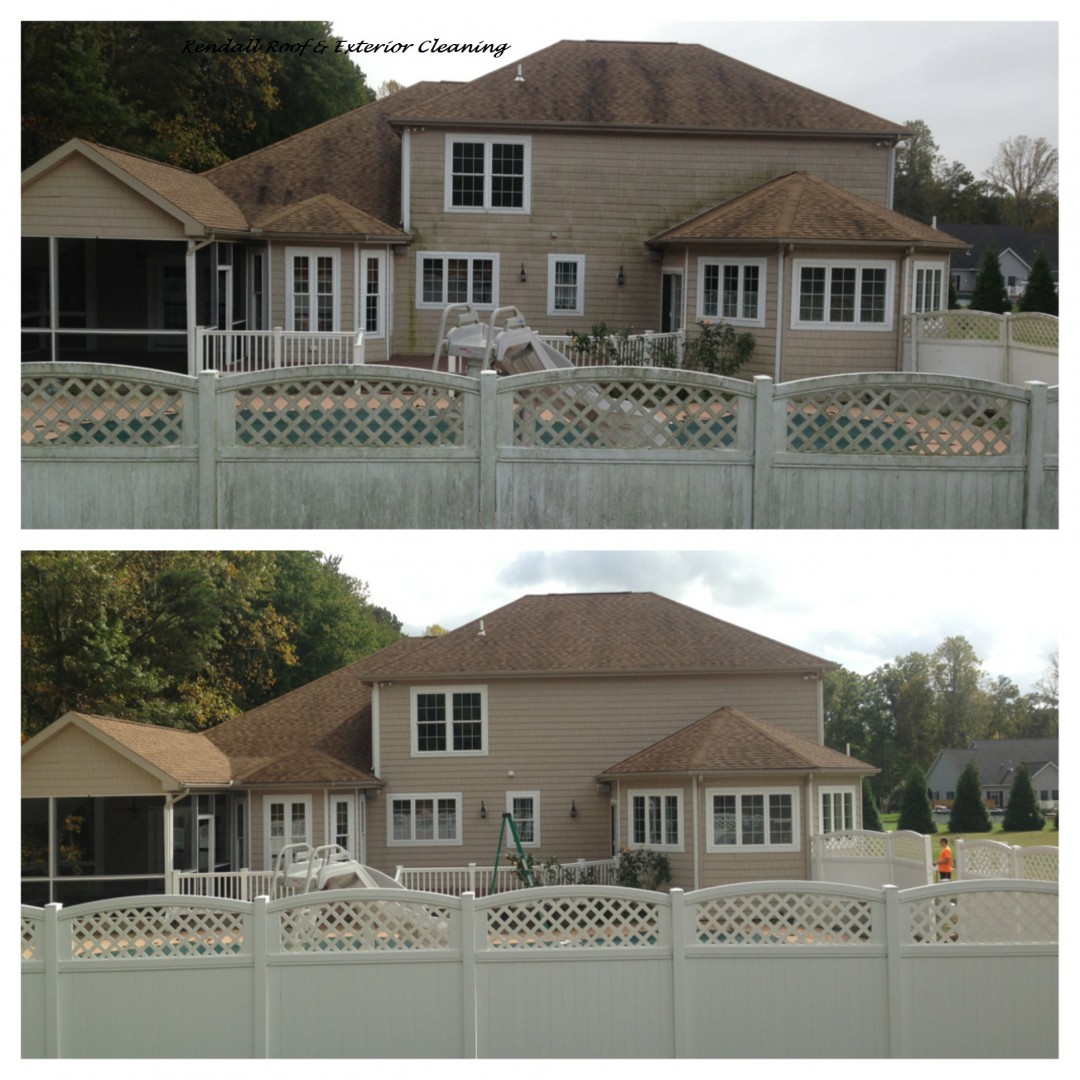 This home's roof,exterior and pool patio were extremely dirty! This home was a bank owned property for the last 3 years and just sat collecting mold and mildew. The newest owners wanted a professional that would be able to clean the entire home without the use of high pressure. Just our luck, we only use a low pressure cleaning system to clean the roof and exterior of these homes! The roof, siding, pool deck and fence were all cleaned in just under 1 day. For your Salisbury Maryland cleaning professionals call us today @ (443) 880-7011