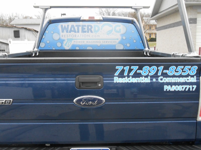 Our other flatbed truck has a smaller version of this design on it, but obviously nothing on the back window due to the window being blocked by the flatbed.