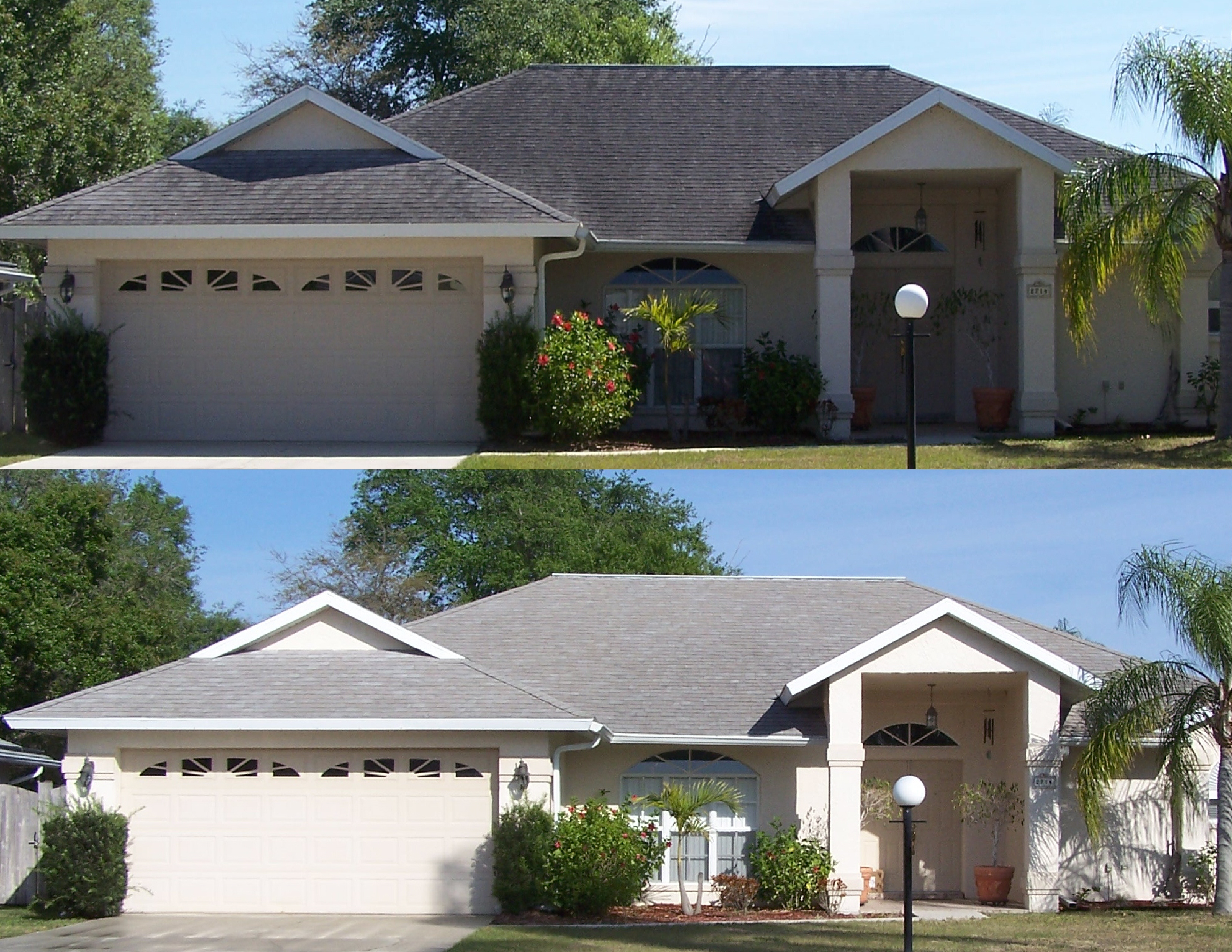 Here's a couple of light colored roofs that were heavily infested. The light colored shingles always make for dramatic before n afters.