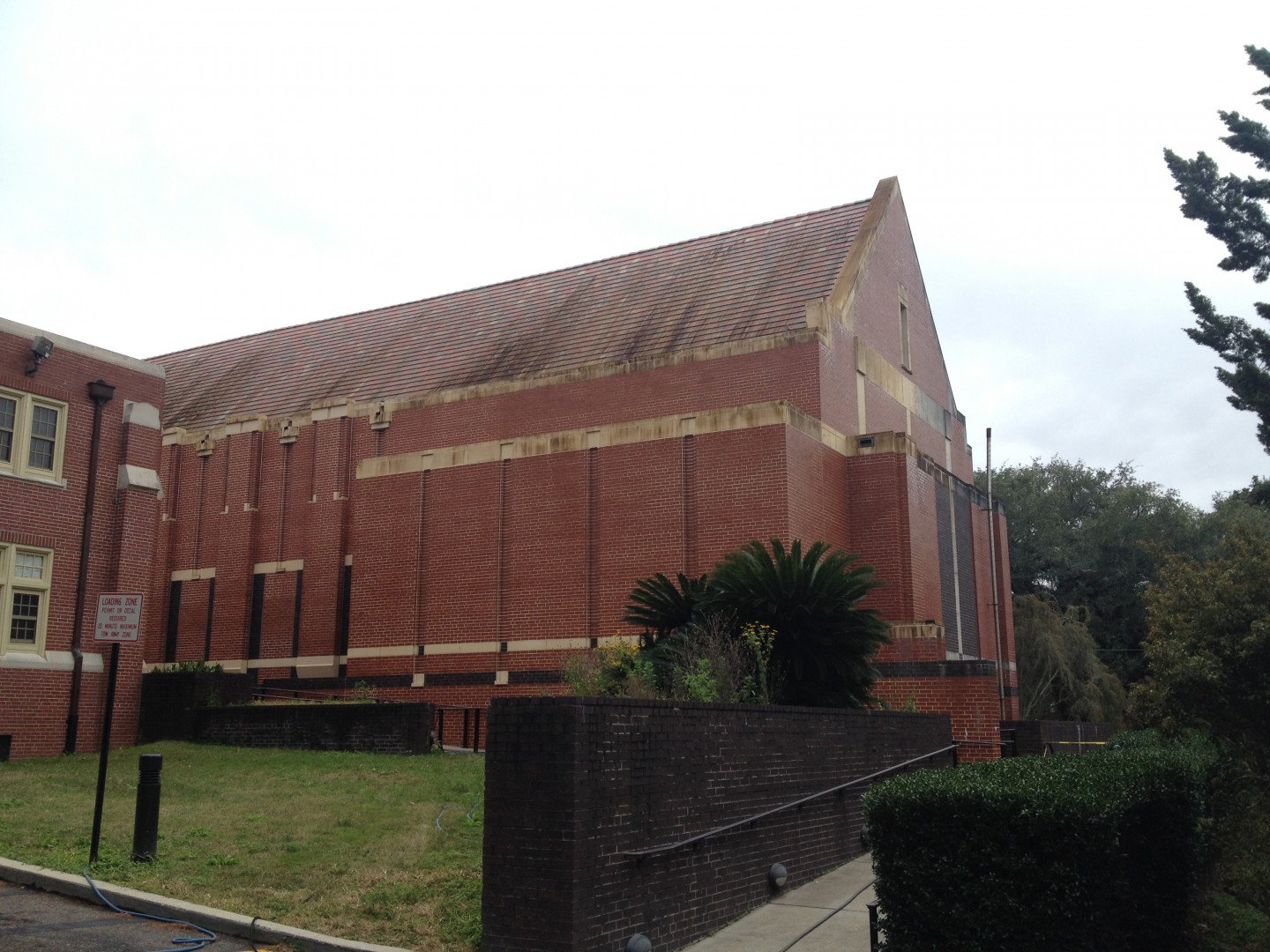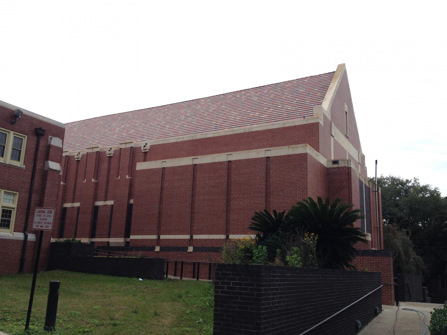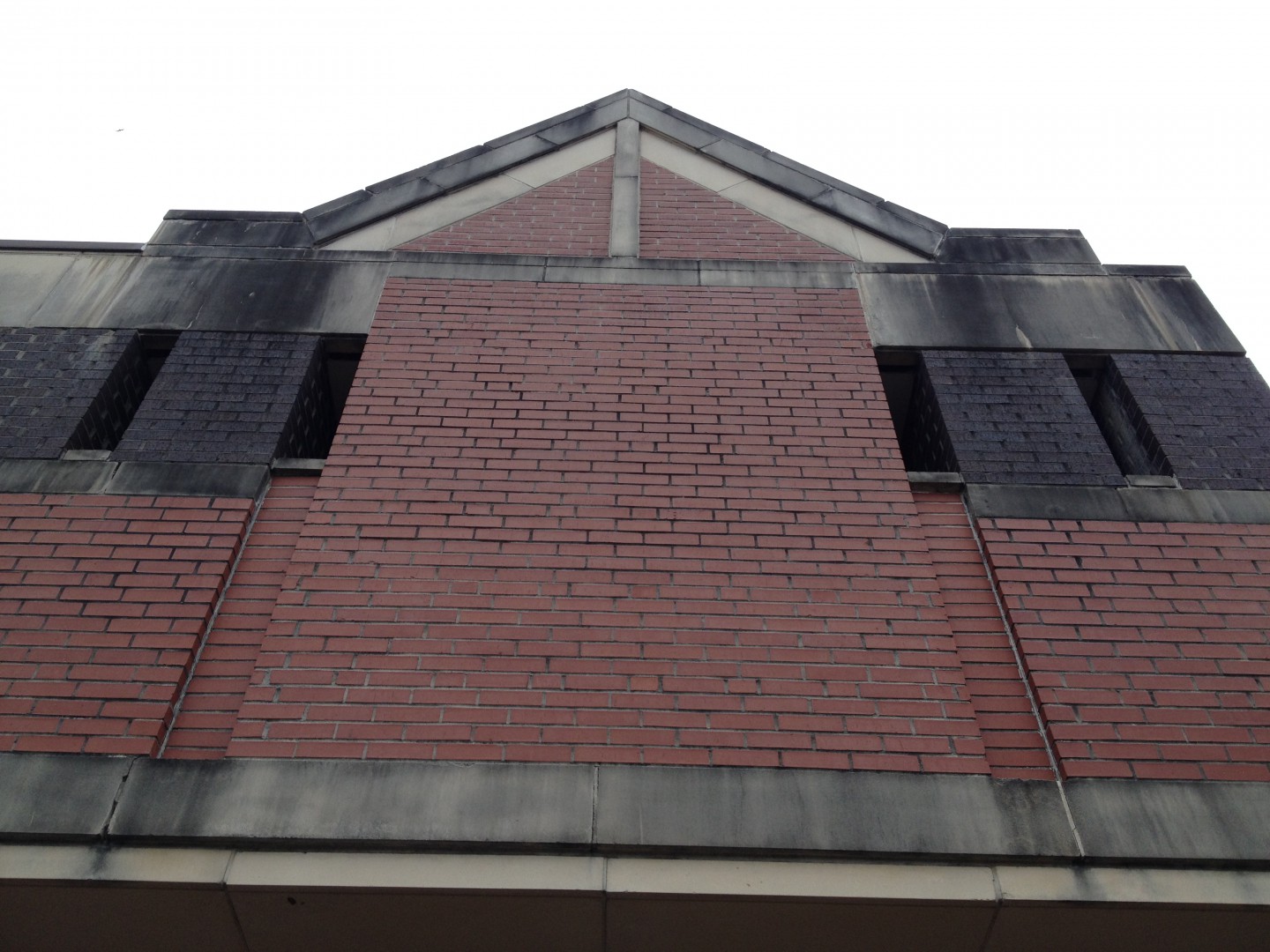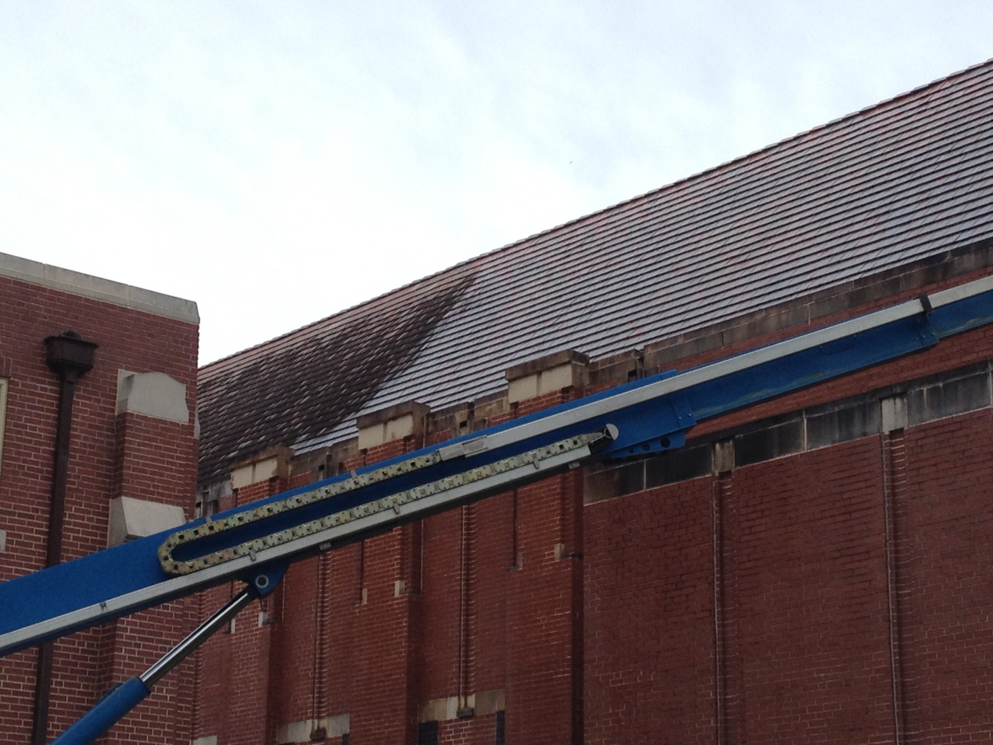 We took advantage of the holidays and semester break to clean Dodd Hall Auditorium on the campus of Florida State University over the past two days. We've got a few touch up spots in the morning, so this will be a 3 day project in total. Ceramic tile roof is a "no walk" zone for obvious reasons. Algae & goo in some areas was 1/8 inch thick!