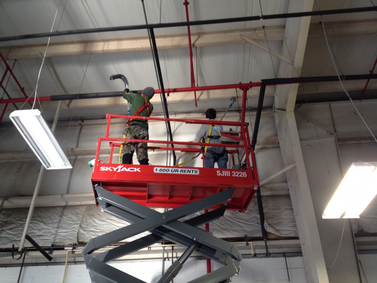 Crew of four, two lifts going. beats the heck out of working outside in the cold And wind.