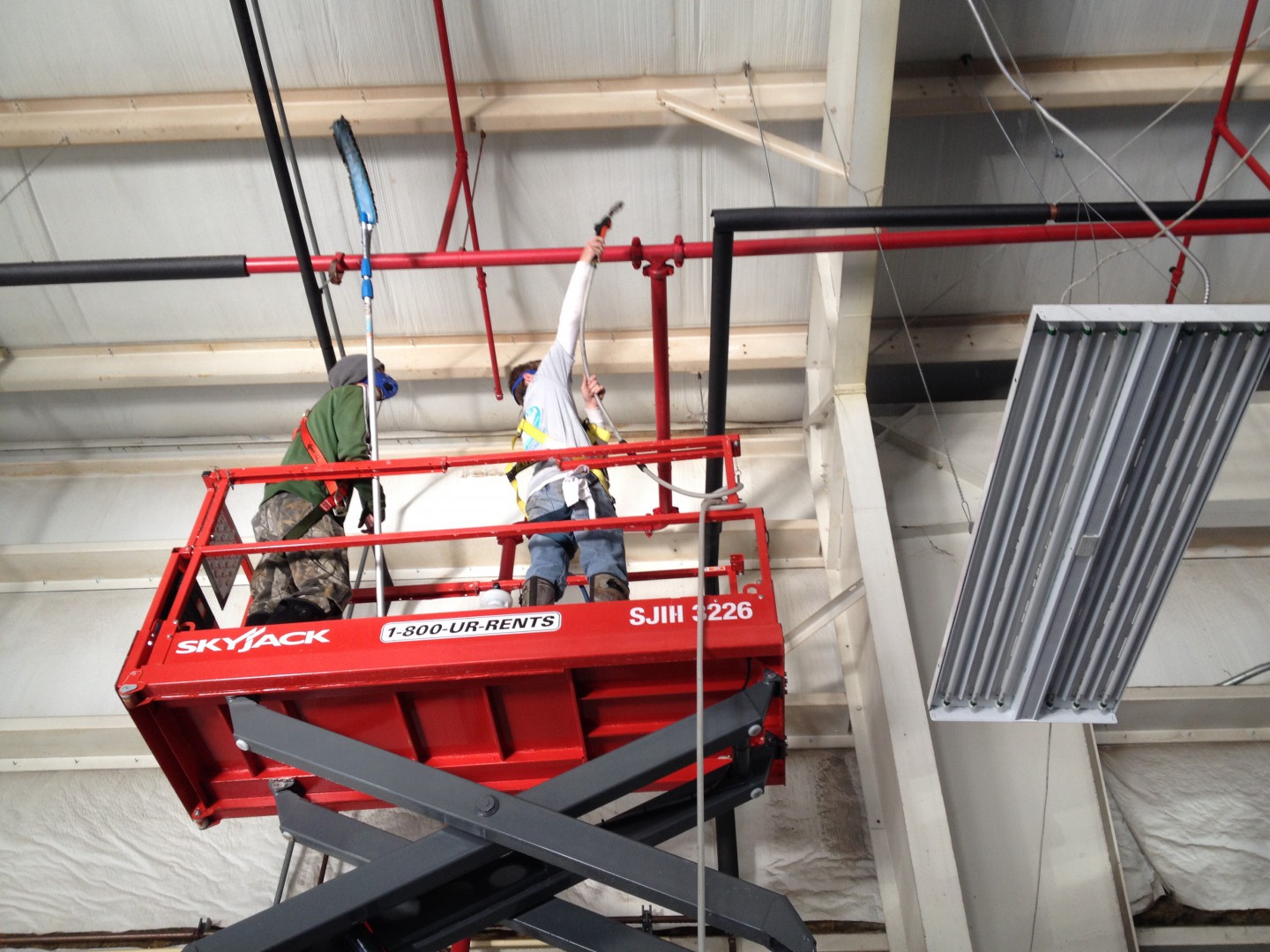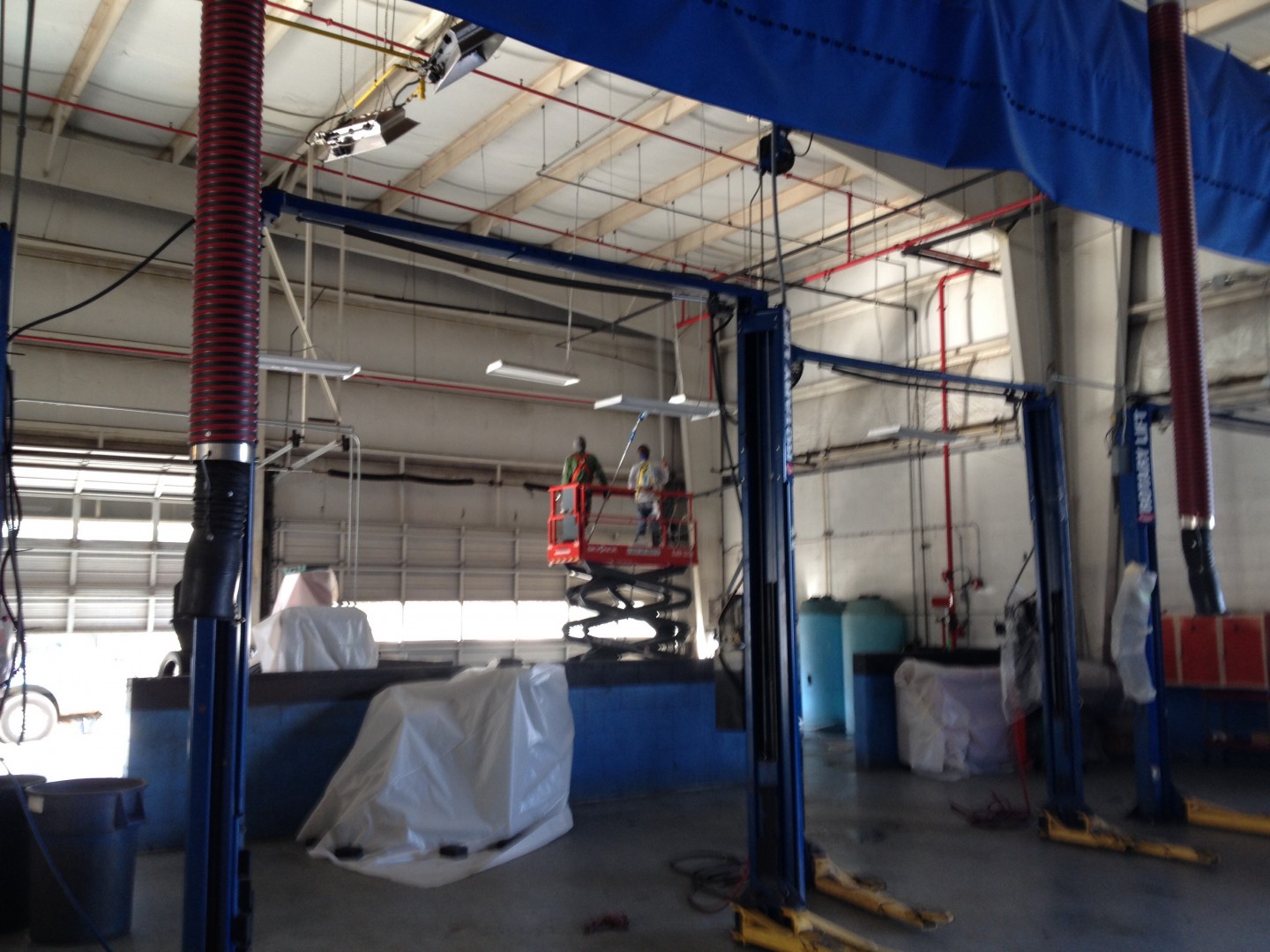 Here's a fairly unique job We are doing today. Our local Honda dealership needed the interior of their service garage cleaned. Soft washing with light bleach and degreaser. MaskEd all sensitive equipment, and pulled breakers in whole shop. Will leave shop doors open tomorrow and dry out all electrical components with the blowers.