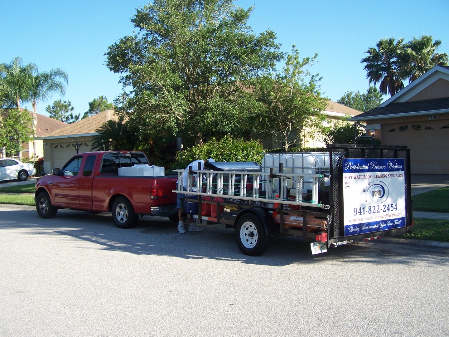 Here is a vid of our trailer a year or so ago. Ive replaced the hose reels with bigger ones, american made, 450 ft steel eagle for pressure line and a 300 ft for 12 volt system. and the 12 volt system is brand new, replaced. This year will build a bigger trailer, larger supply and 2 pressure washing pumps and engines. Still gonna 5 gallon chems on the side.