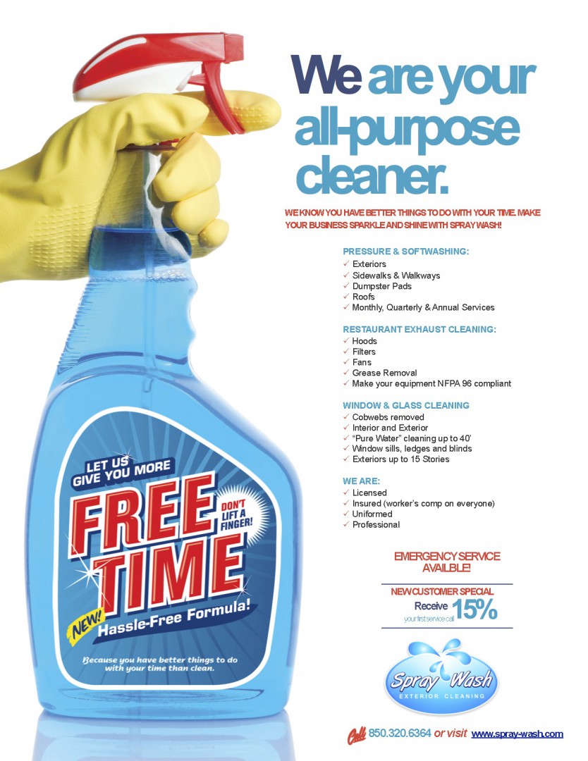 I like the "Free Time" theme. I know where Ray is going with this. This is the type of message he needs to get to his clients. This flyer wouldn't work for most of us. This flyer is just one of many tricks Ray has in pushing his no hassle commercial soft-wash service. Ray is just playing with you guys. He's a pro at this.