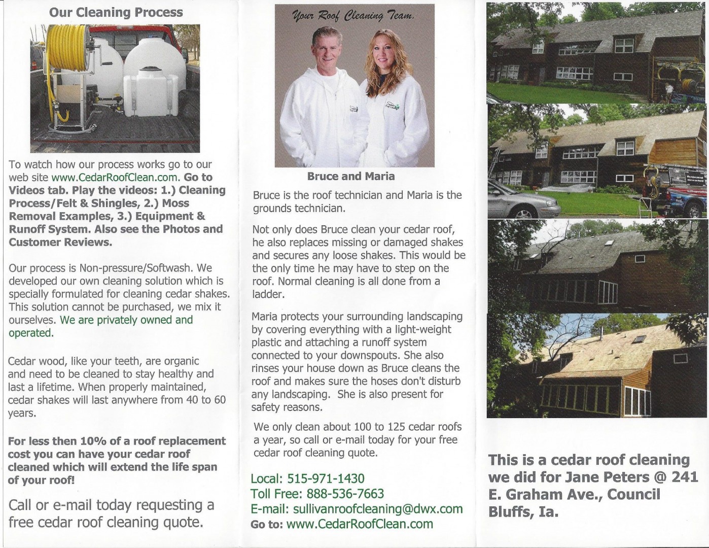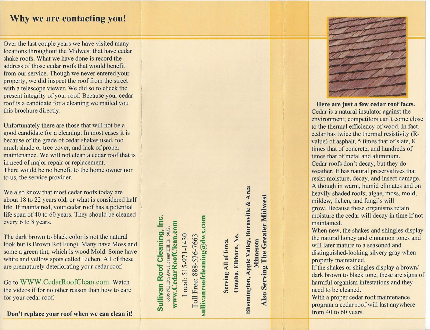 This is a tri-fold I have used for some time to residential which has given us great return. For each different area we change the before & after picture for that area. All educational.