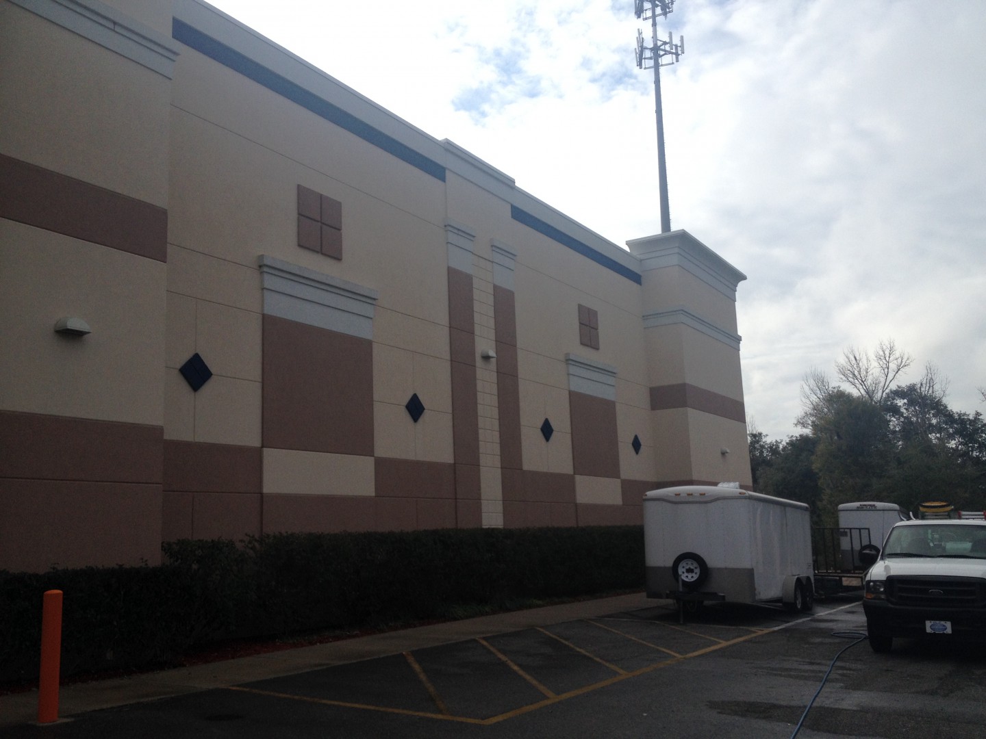 Spray Wash Exterior Cleaning had the opportunity to clean this 90,000 sqf storage facility, located in Tallahassee, Florida on February 3, 2014. The Dryvit exterior was in desperate need of a cleaning and we we able to safely, properly and expertly provide this service.