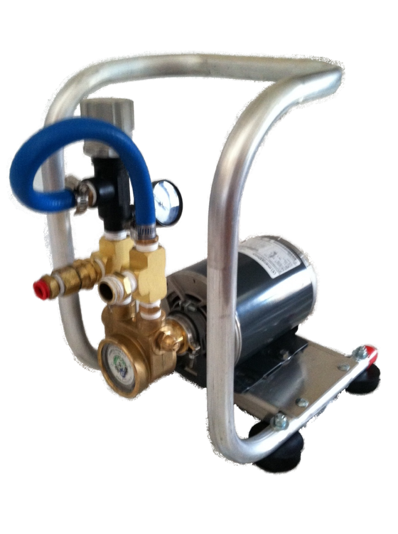 This pump will offer up to 100+ psi of regulated boost pressure from a quality 5gpm or more rotary vane pump.This set up is used to increase water pressure through a RO purification system