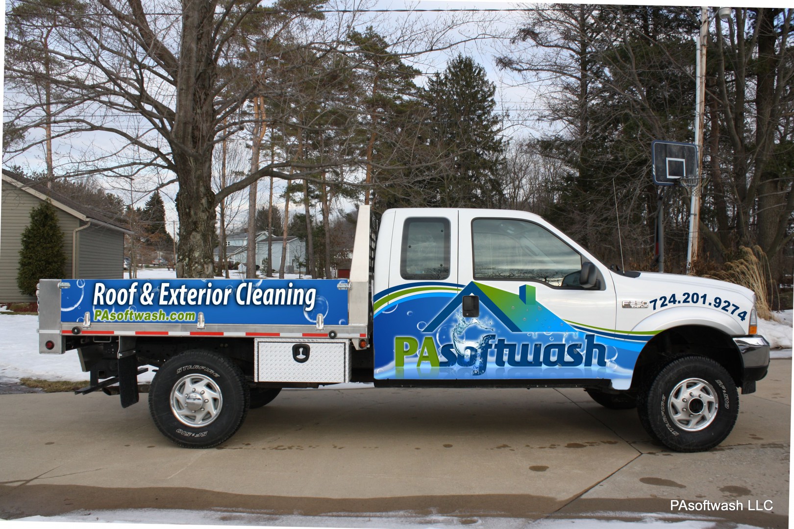 We are designing the new wrap for our newest PAsoftwash truck we have added to serve our customer better. As you can see, real estate is limited on the sides and back , but still plenty of space if used right.