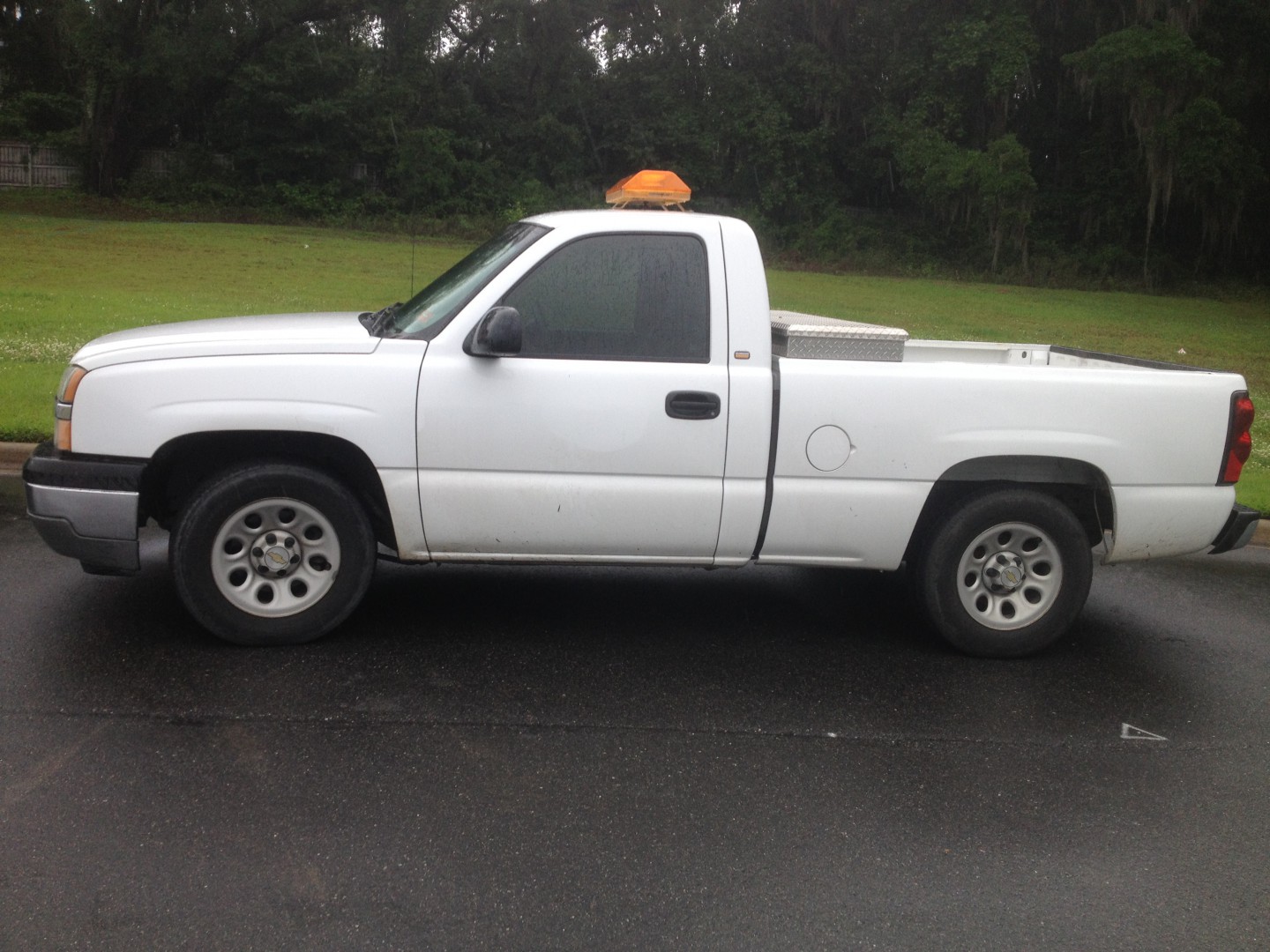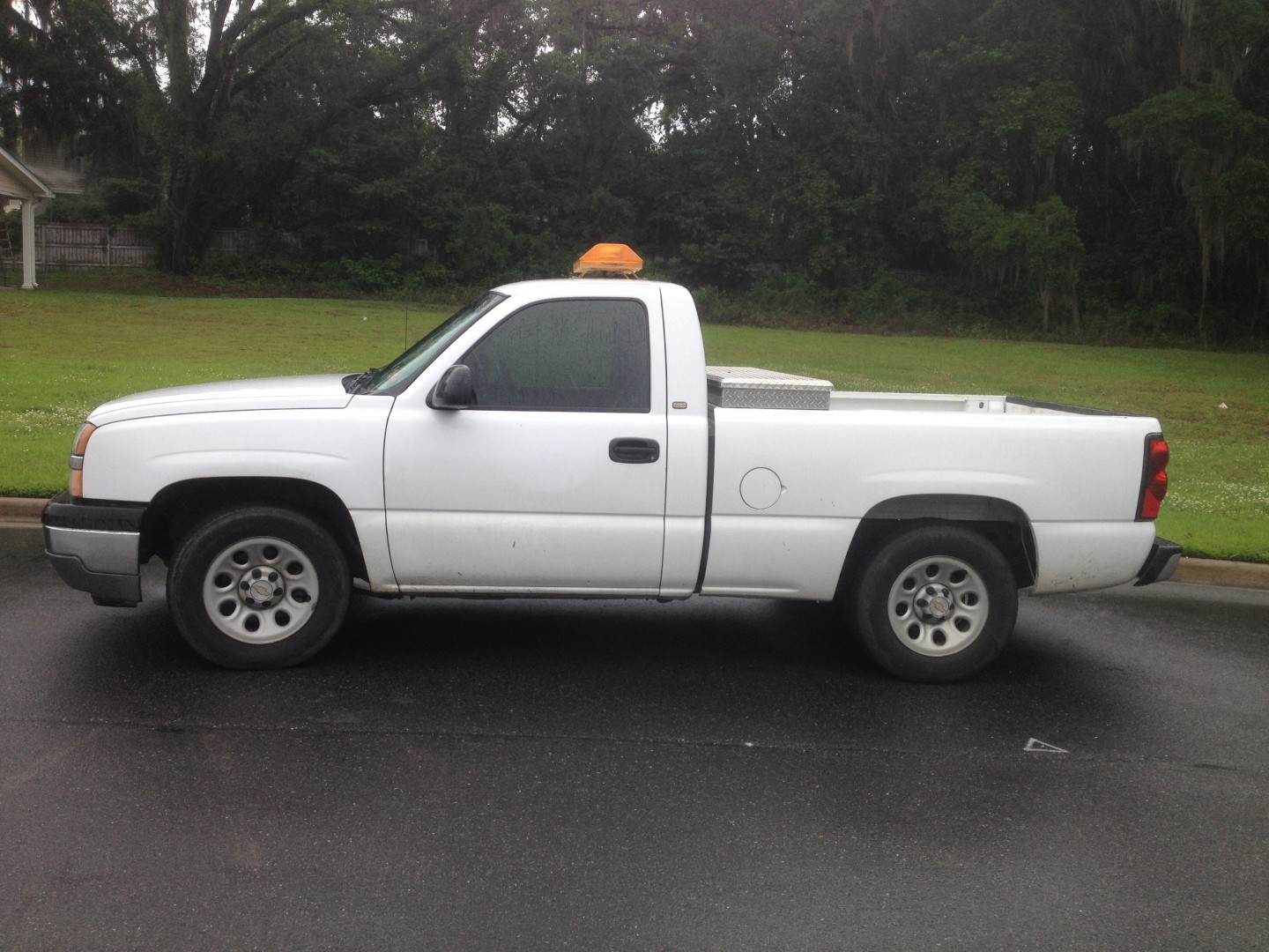 Realized that since all three of my trucks had assigned duties now, I was left vehicless. Picked this one up govdeals.com. 2005 Chevy, 5.3 engine, 150 K miles, service truck for the city of Jacksonville Florida. At the end of the auction the price was $3300, so pretty happy with the deal and value. Pretty basic truck, but still heavy enough to deliver a lift, or some extra chemical, or pressure washer to the crews when needed.