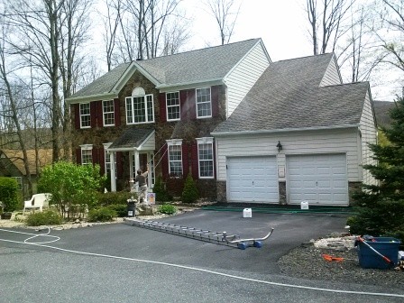 On Wednesday, 5/7/14 our team of trained professionals at Pocono Non-Pressure Roof & Exterior Cleaning provided roof cleaning, house washing andĀ gutter brightening to the residents of this home located in Shawnee Village, which is located outside of East Stroudsburg, PA.