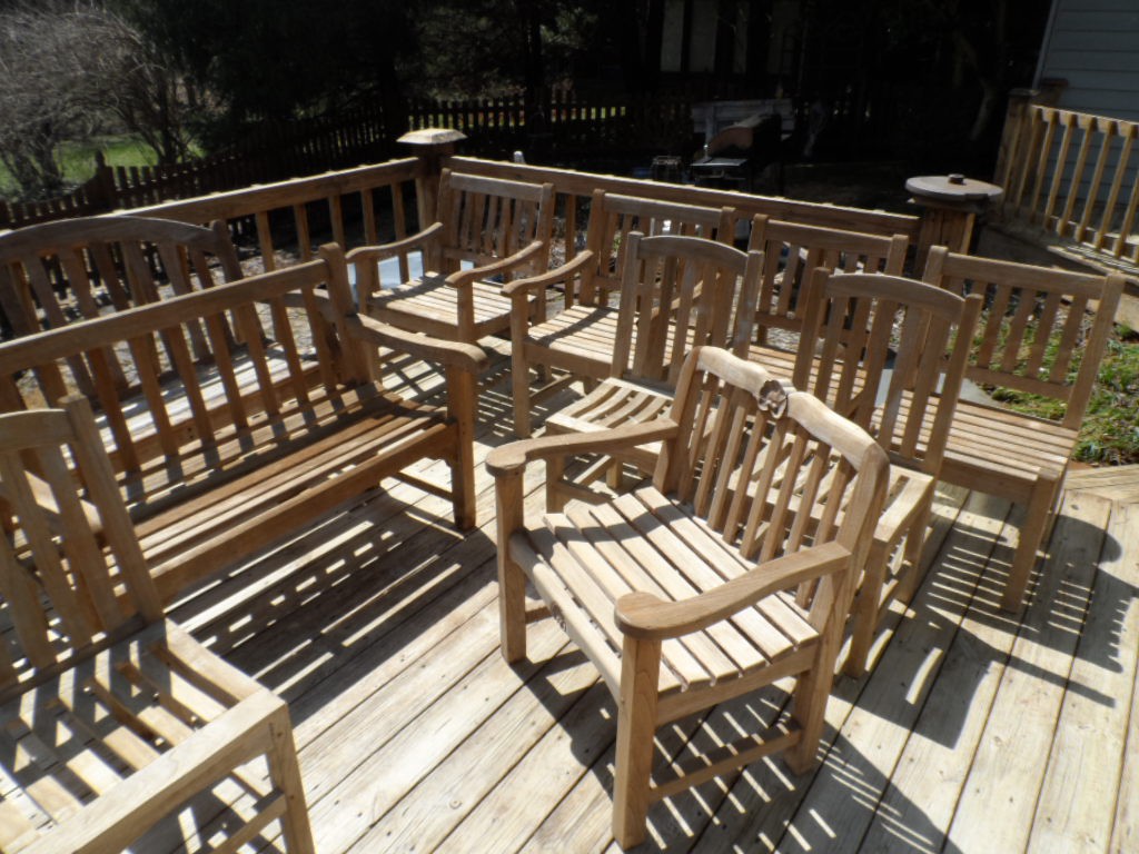 Charlottesville, VA wood restoration project just in time for a wedding. They had no idea how to approach this project so they went to Angie's list and saw our A rating. With a few battles with rain, cold and wind, we got the job done with only a few weeks to spare for the big wedding day. We replaced siding, stripped and refinished the deck and exterior furniture and cleaned the pressure treated fence.