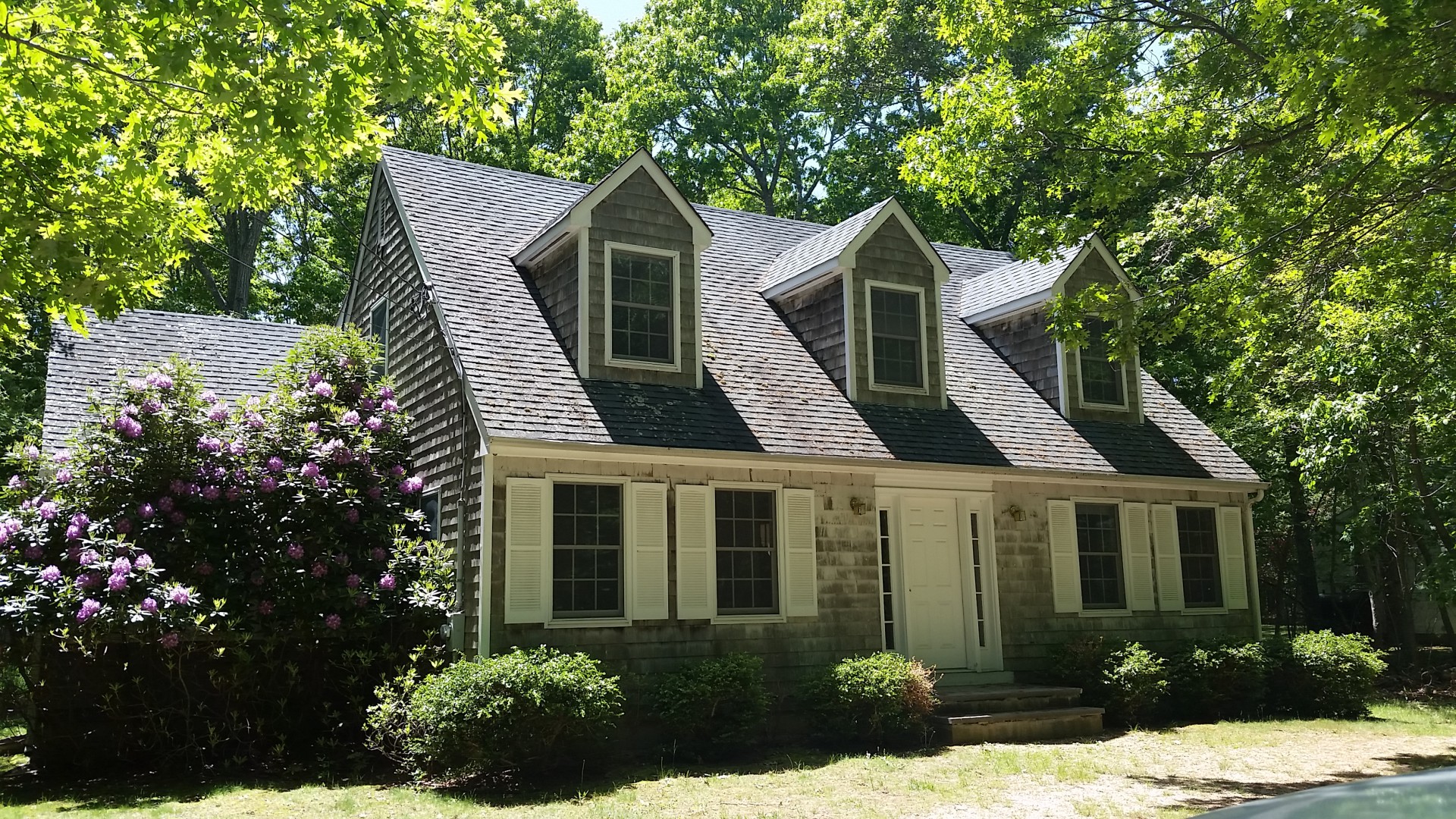 cleaning a roof tomm for a customer and while doing the estimate noticed there cedar siding is in bad shape. The shingles have this white coating on them it almost looks like paint that is wearing off. Is this white rot fungi? It seems to be very heavy under the soffitts in the front and fades as it goes lower. the house faces north (of course)