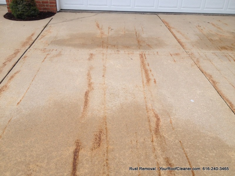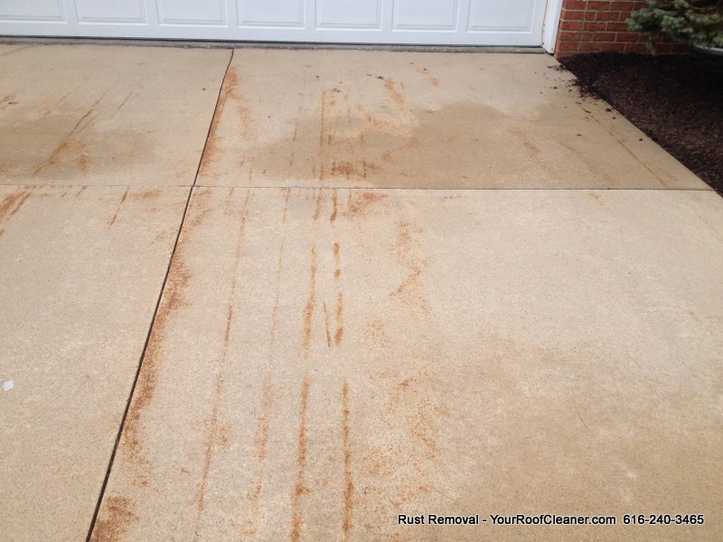 Roof Cleaner got a call from a local landscaping business about one of their customers driveways that had been damaged by the snowplowing over the past winter. The plow had left rust marks all over the driveway and the customer was very unhappy and wanted the rust gone. With some help from Craig and some F9 we were able to remove some very stubborn rust, the homeowner is once again pleased with the landscape company, and the landscape company is pleased with Roof Cleaner of Grand Rapids.