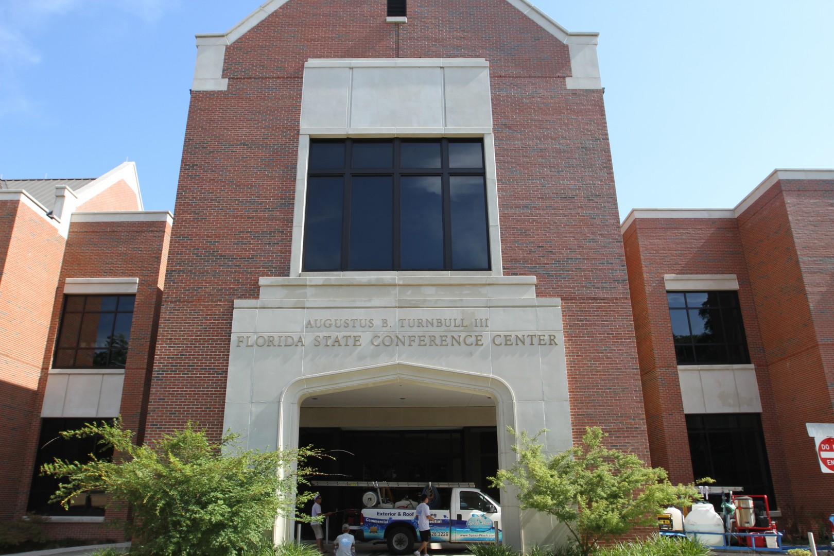 Spray Wash Exterior Cleaning had the privilege of cleaning the Agustus Turnbull Conference Center at Florida State University over the July 4 weekend. This majestic structure is home to world class business conferences and other important meetings. Its is vital that Florida State University keeps this building looking it's best, and when they need it cleaned, they call Spray Wash! Our services today included a full pressure washing of the exterior and a professional window cleaning.