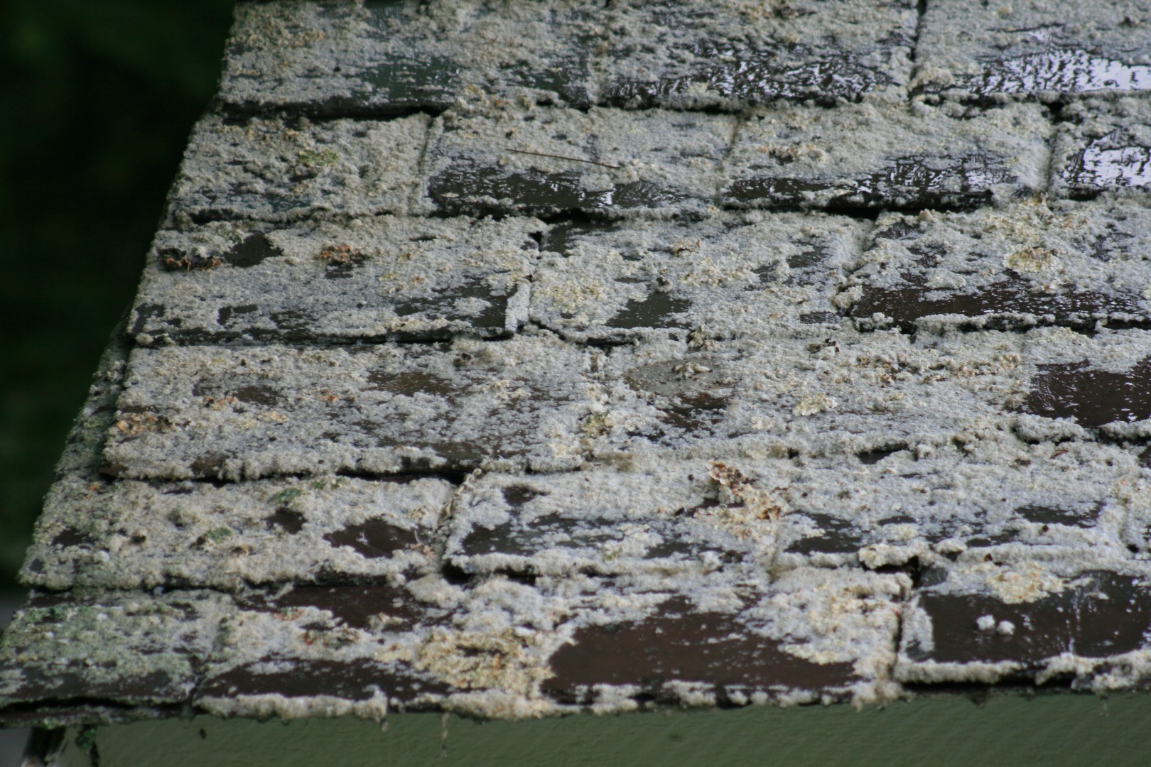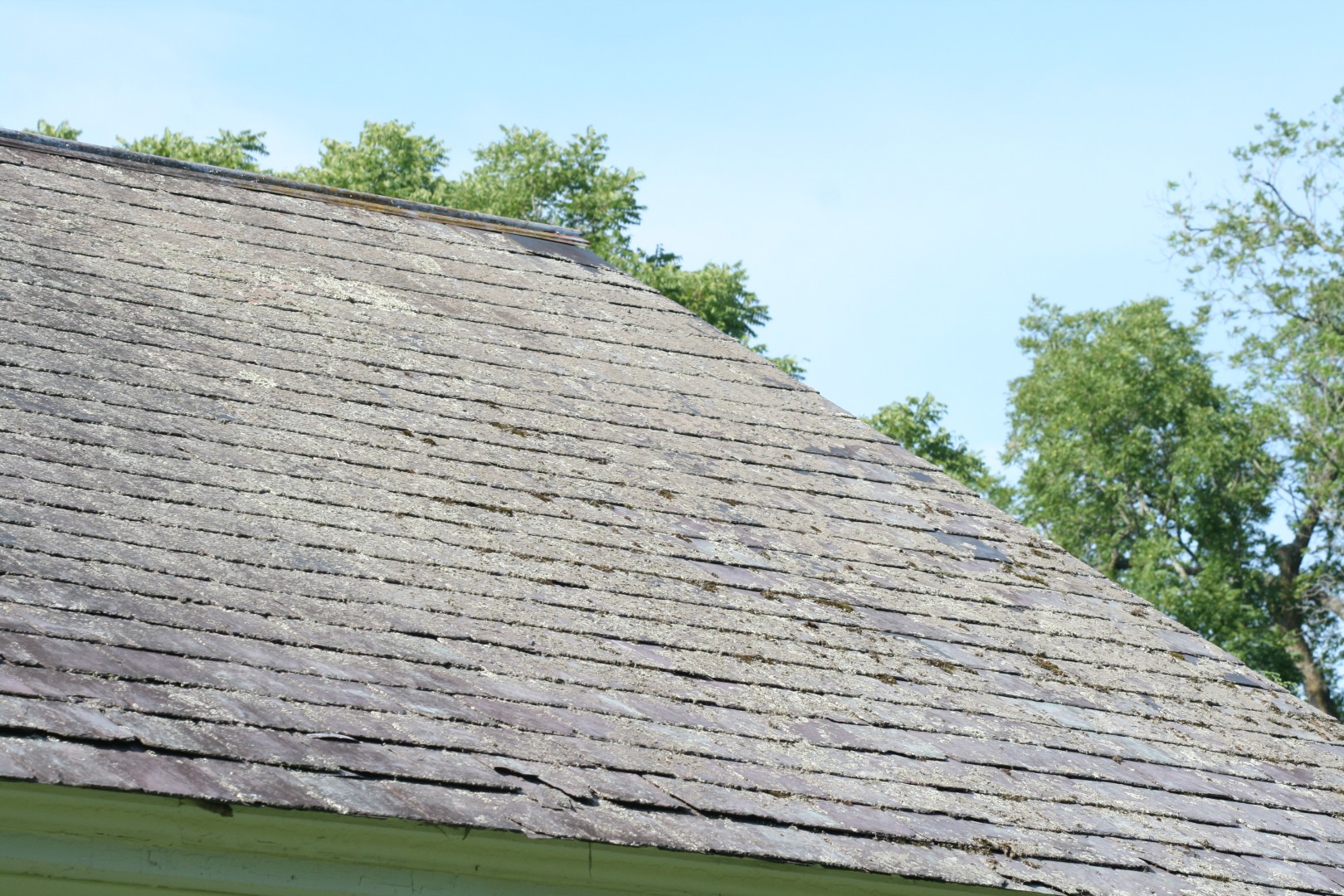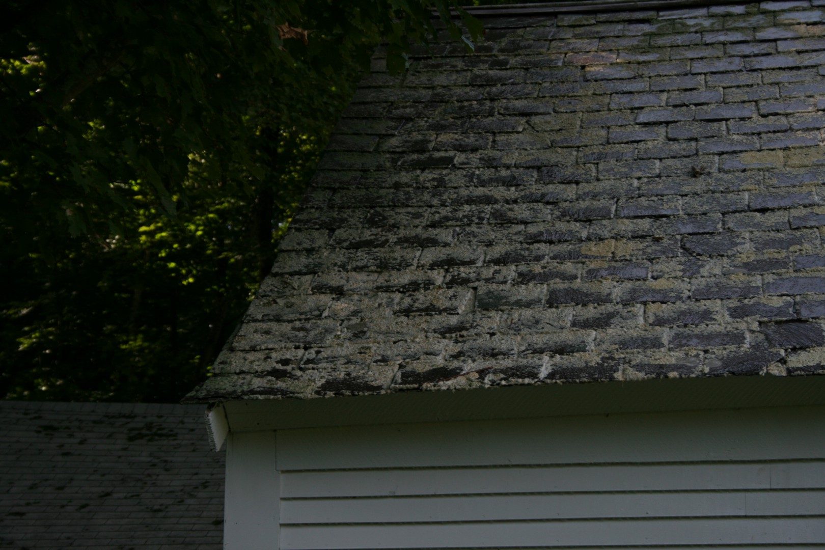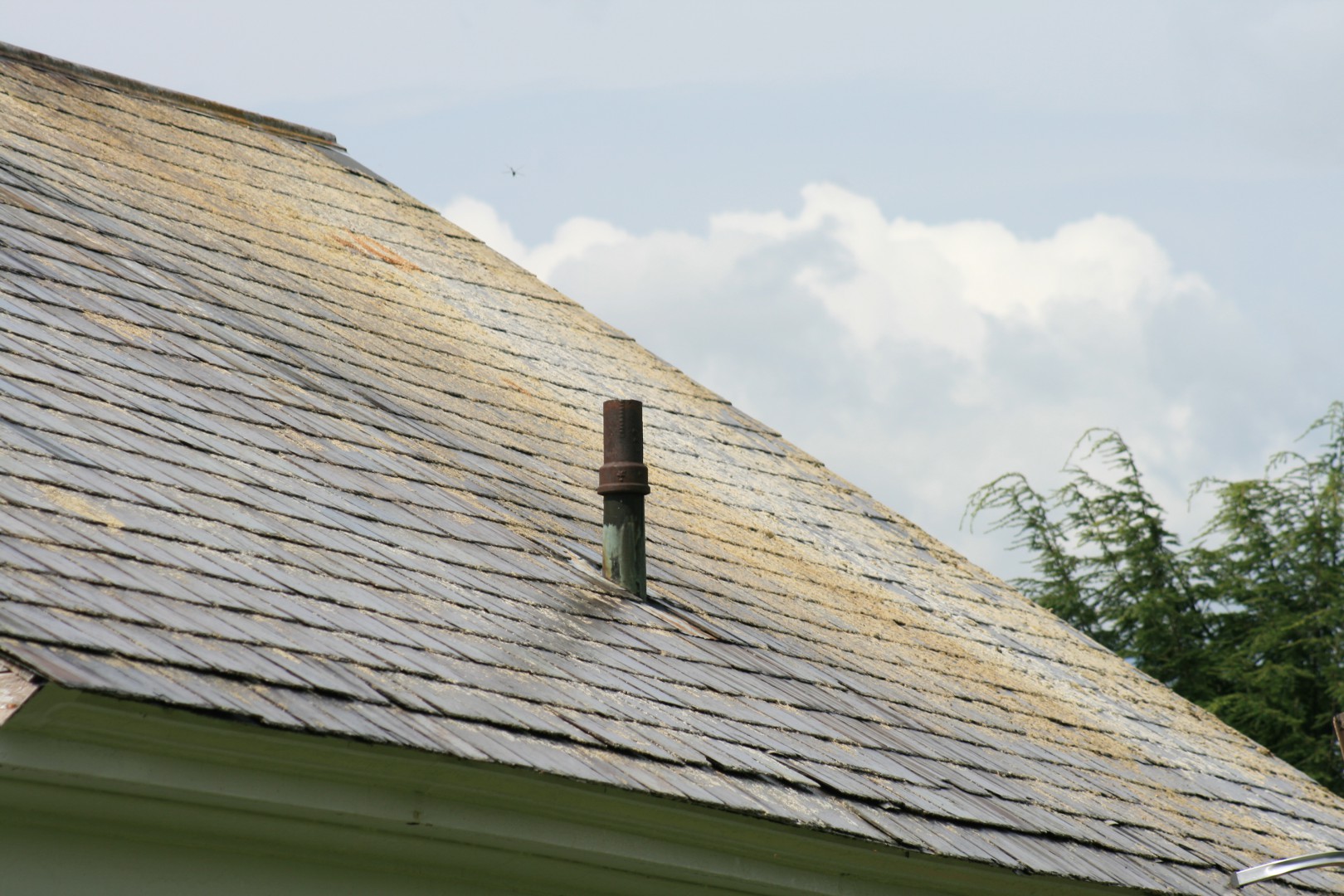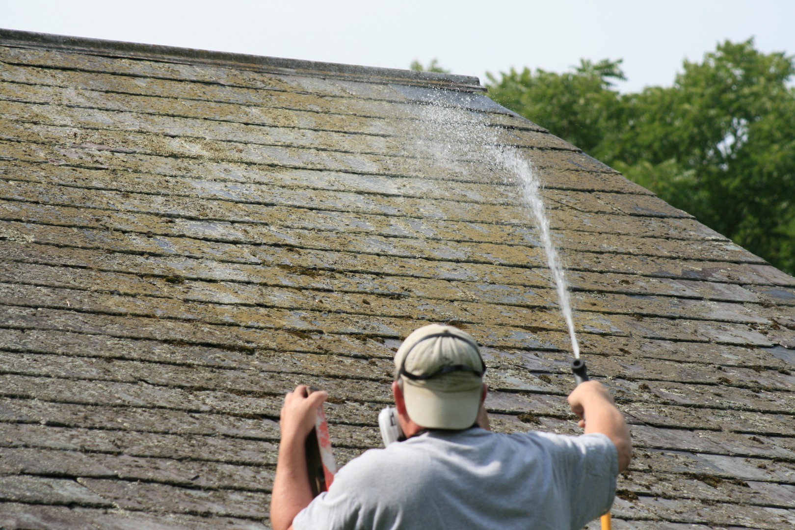 You might want to brush up on what happens to slate when it hits a certain age...Like 40 yrs on up. When that moss and Lichen comes off you might receive a phone call from the cutomer with some questions. Being up to date will help.