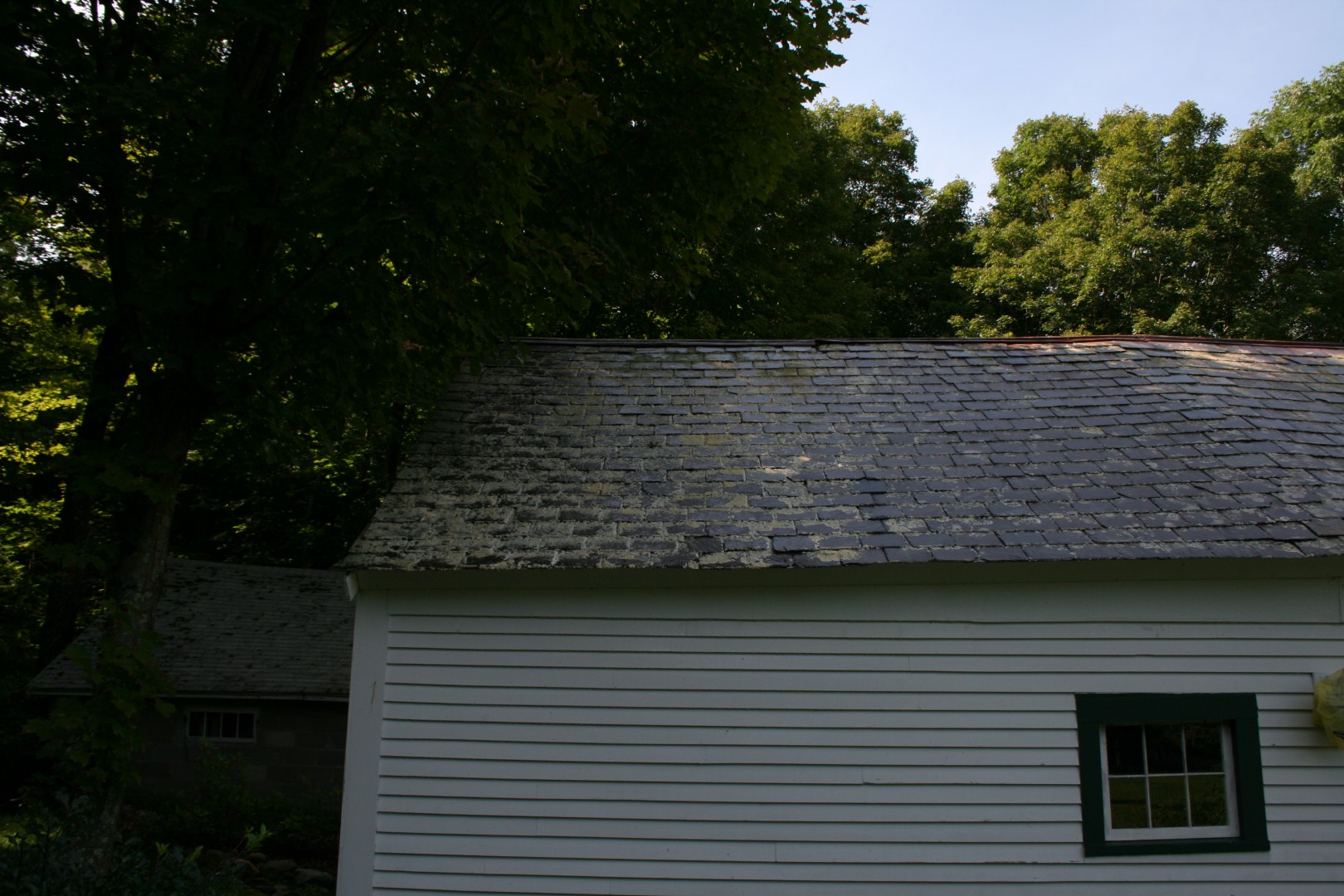 You don't want to scrap it or pick it, soft wash it and charge right the first time. We try not to mess with the slate as sometimes they are brittle from the years of weather.