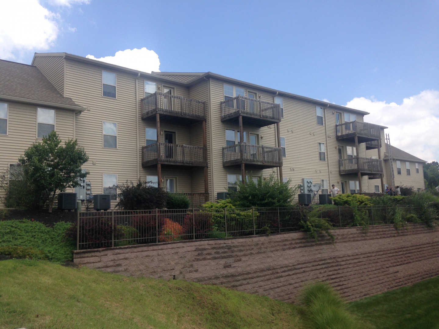 Liberty SoftWash was contracted to clean all 32 buildings and attached decks of this apartment complex in Mountville, PA. We cleaned the buildings using a soft wash cleaning rather than using the traditional method of power washing. During the soft wash cleaning process, all the dirt, algae and mold is treated during the cleaning solution application, which is followed by a high volume low pressure rinse. By using this cleaning method, we are able to achieve longer lasting clean results than traditional pressure washing with water alone.