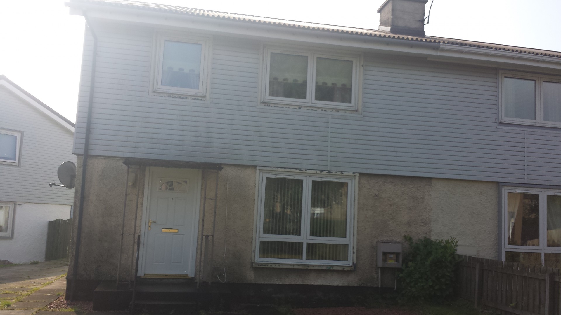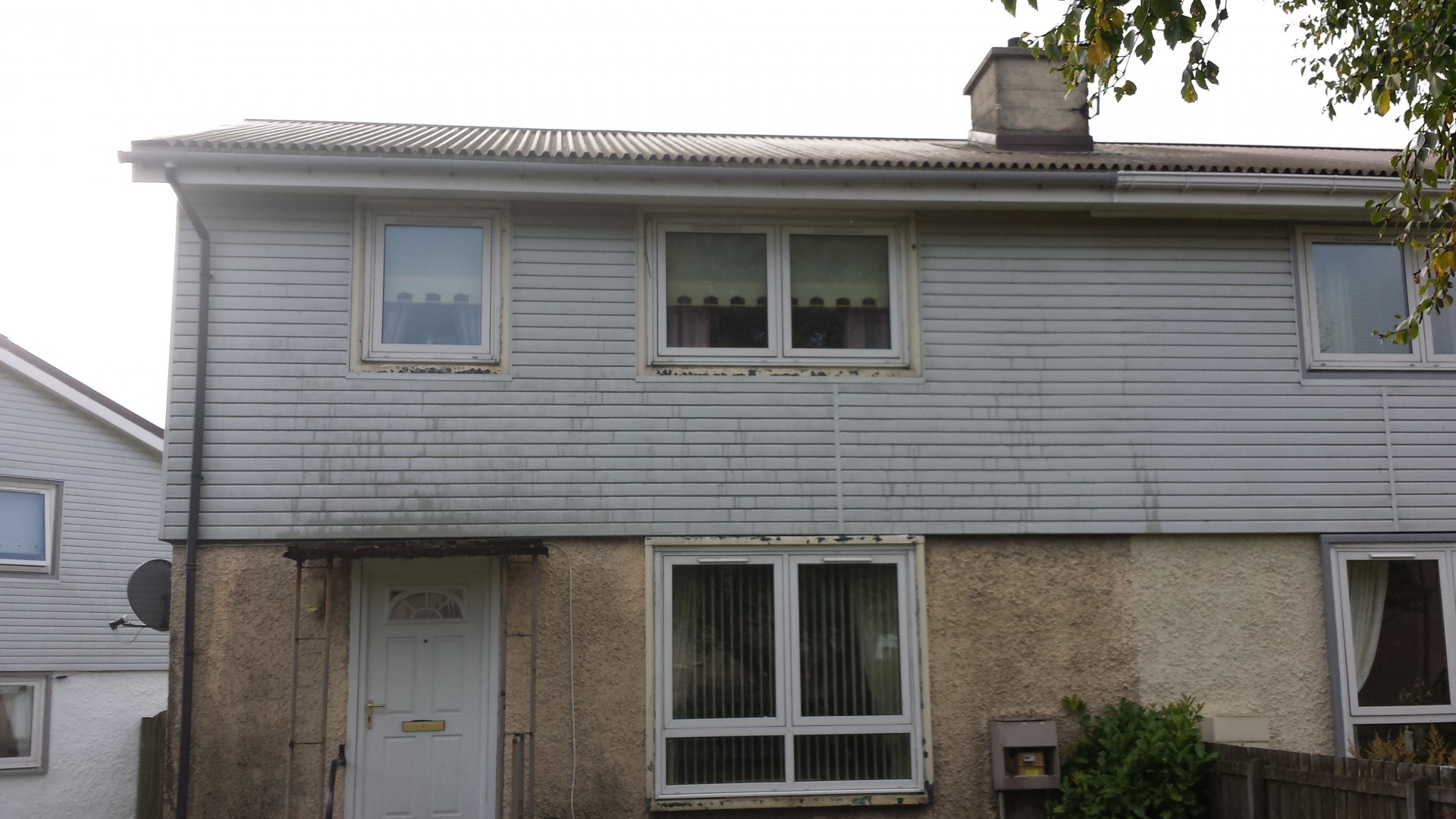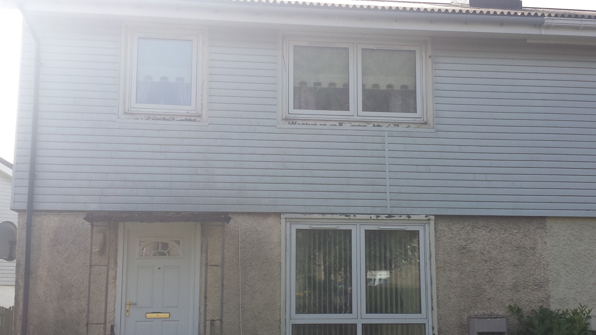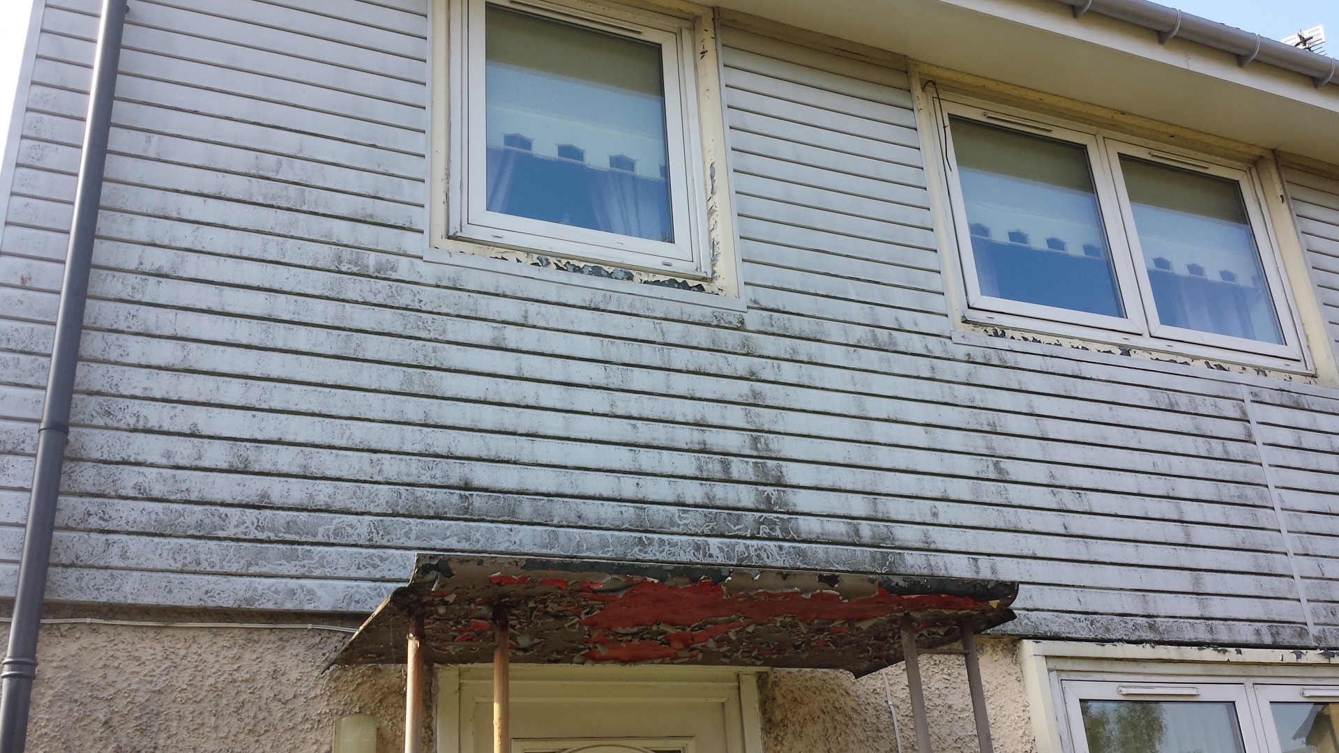 hi guys aye did a freeby today as am trying to land the big fish this is a pvc coated house in blackburn west lothian 24 years ago it was clad in pvc the HO said so i washed it with just straight R.O WATER and the high reach brush its only a 1 gallon min pump 100psi it did remove the top layer but the staining stayed on the pvc