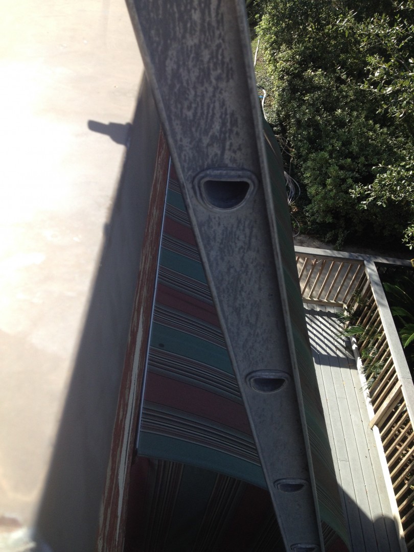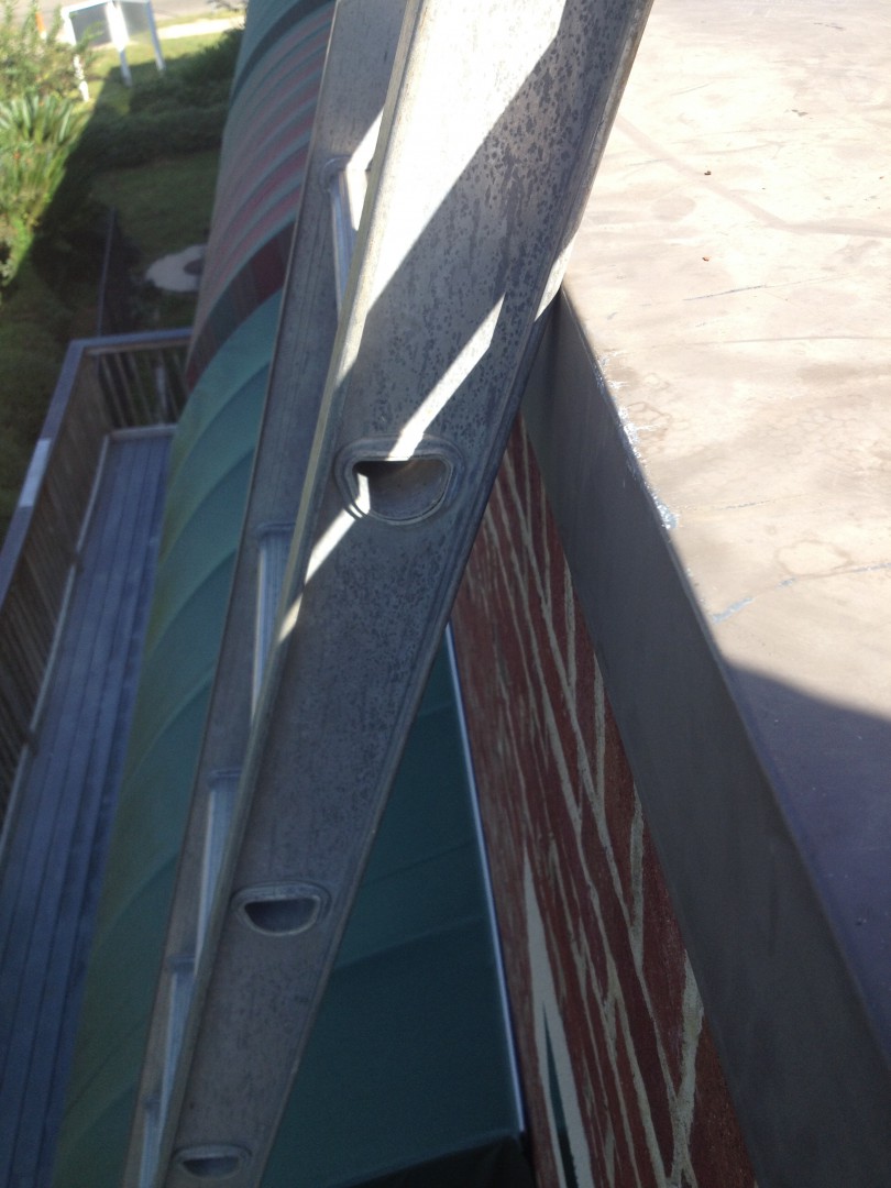 Seems like a lot of the hood cleanings we do involve flat metal roofs with knee walls. Top of the knee walls usually have metal flashing as a cap. The ladder tends to slide around on this a bunch, and we're already greasy when coming down..its a potential for an accident.