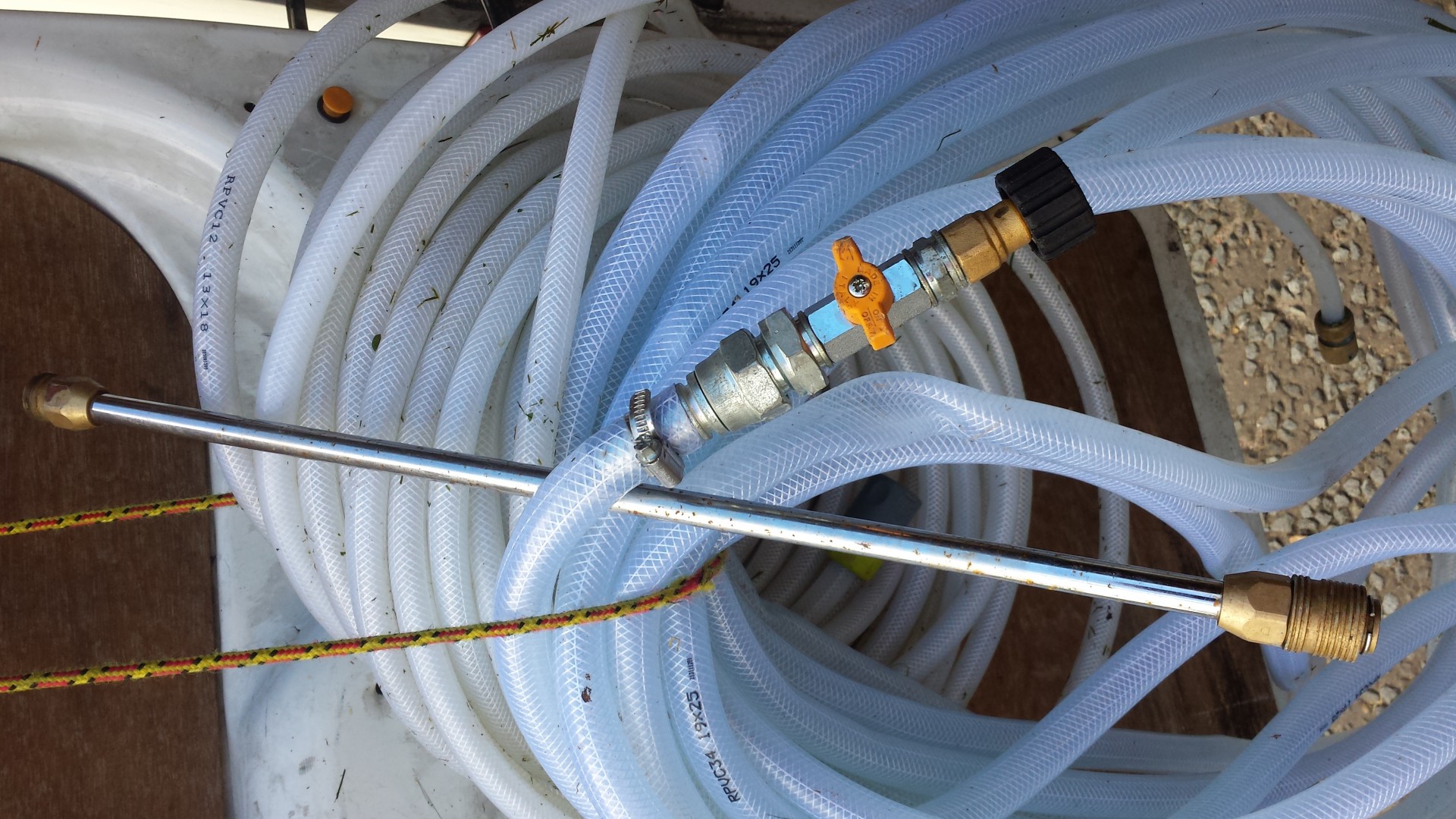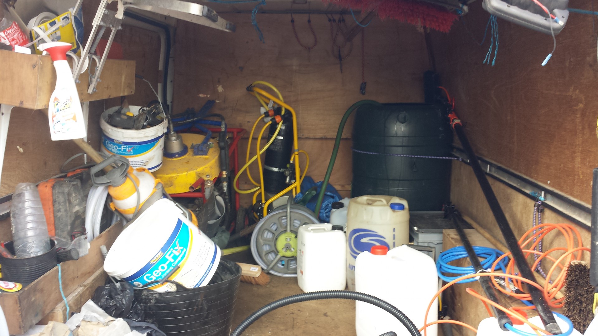 they must have thought a was mad ,,, well a went and showed him it working on a very small piece at the rear made a difference but not major impact from a pump sprayer just for test patch so he wanted to see the comparison between his little PW and my softwash set up was only using my little reverse osmosis pump 12 v 1 gpm 100 psi , to rinse it it was working better than his PW and the detol mix he was using as it was still leaving the black stain on the metal coating. haha where as softwash mix applied at pump spray and left on then rinsed at 1gm 100psi through a old spray nozzle from the garden ,was rinsing it of easy.