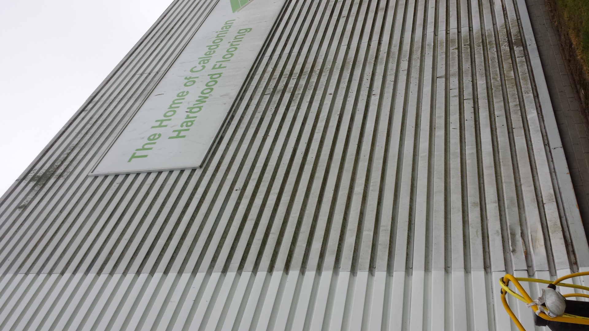 hi guys got this warehouse wash yesterday morning off the painters that where pressure washing the front of the unit i stopped hit them with my little script aye learned on here from you guys , and well they were hooked as they say , they have spent two days at the front washing it with a little pressure washer on a scaffolding tower , using the chemical injector on the little washer to mix good old regular store bought bleach well detol he had disinfectant , they guys where hard at it let me say trying shift then in comes me ,telling them aye can do that in half our top to bottom without scaffolding ladders or brushes to wipe it of.