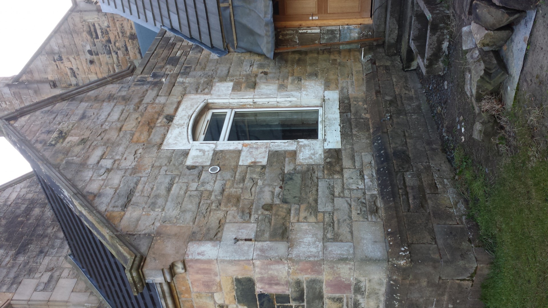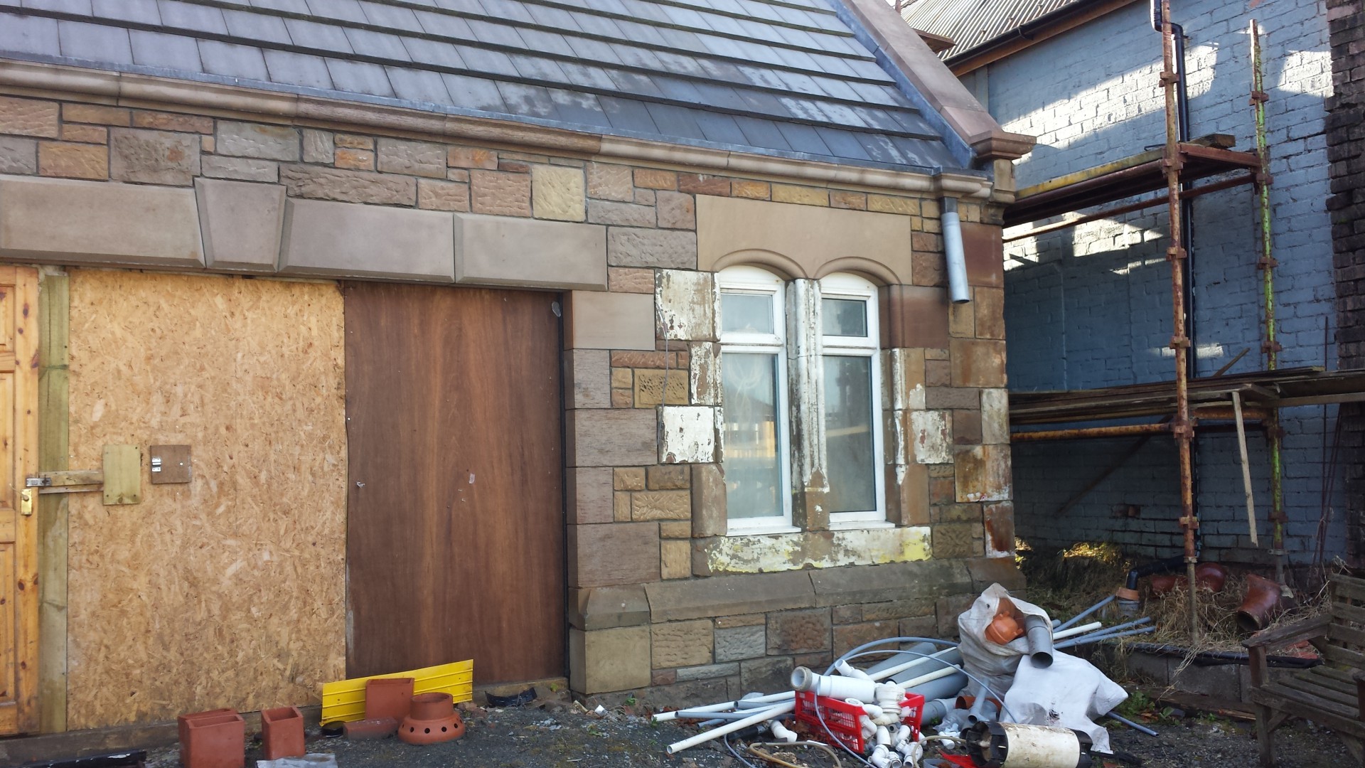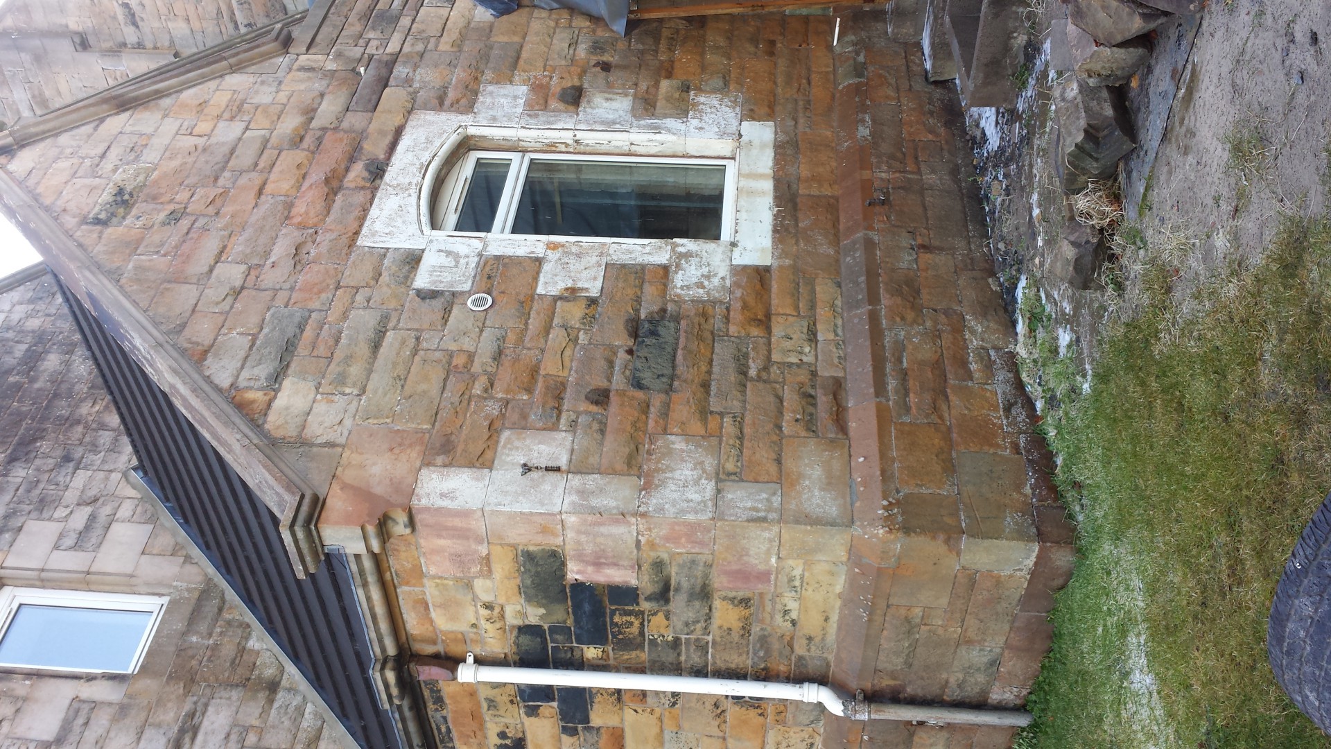 Hi guys here is the sand stone building aye softwashed came up great got more work on this old building to do now also.
