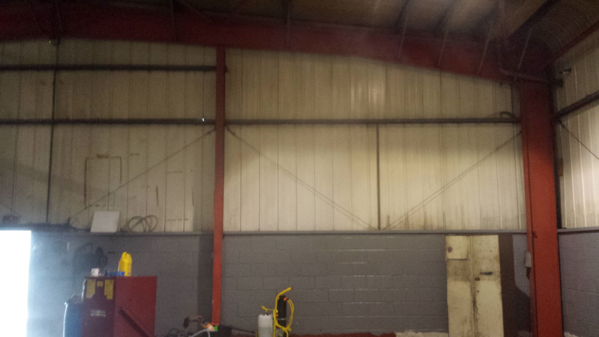 this unit is 30 years old it has been a small bus company s garage and is covered in exhaust fumes stains any advice on cleaning this carbon stain of would be helpful.thanks guys
