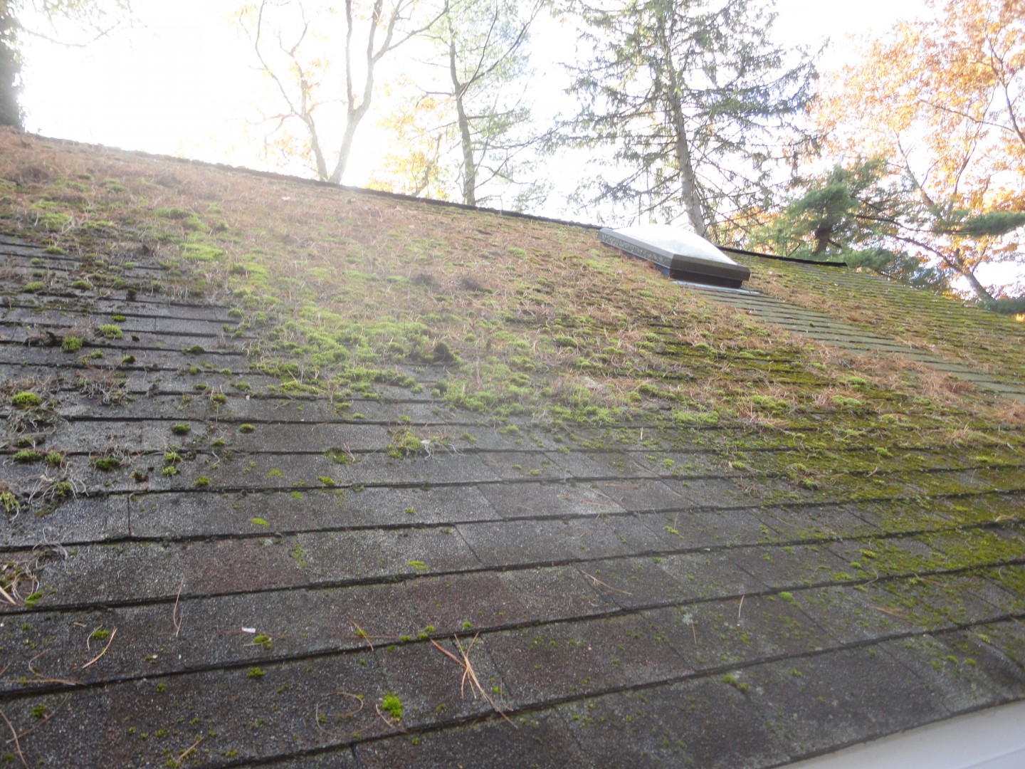 We actually cleaned this roof earlier this year even though I advised them to just replace the roof. The entire roof was carpeted. To add insult to injury there was no running water on site or in the cabin(pictures attached). The cabin was two miles back in the woods on a creek. They use it only for one night stays to hunt or fish.