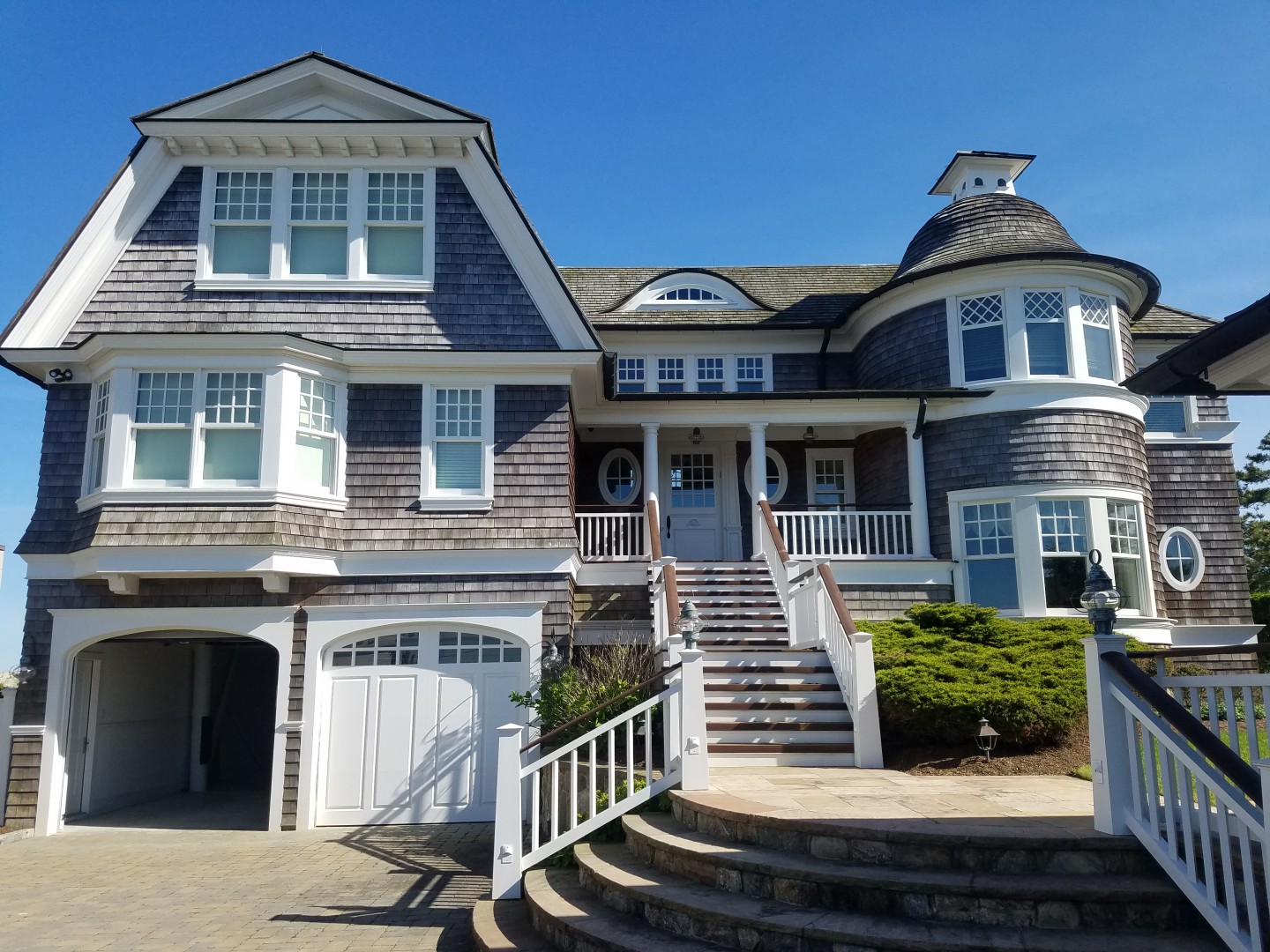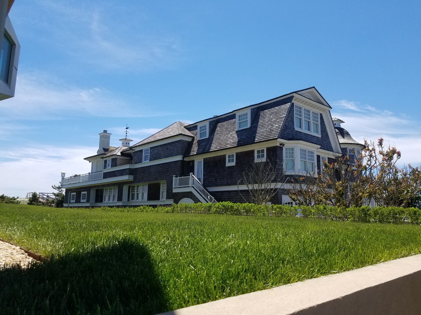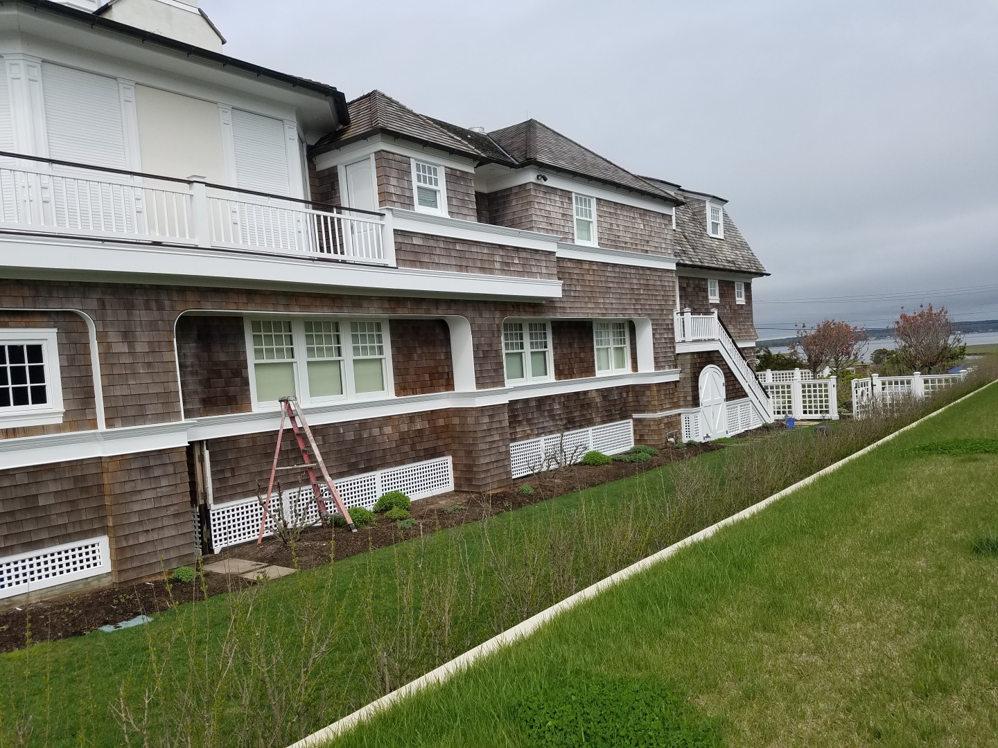 these are Hampton homes, the natural greyed weathered look is normal. Nearly every house is built like this. Its a $15 million home and that's cheap, many go way past $30 million and this guy keeps us busy 4 months a year plus another main home so if he wants something done my job is to figure out the best and most efficient way to do it.