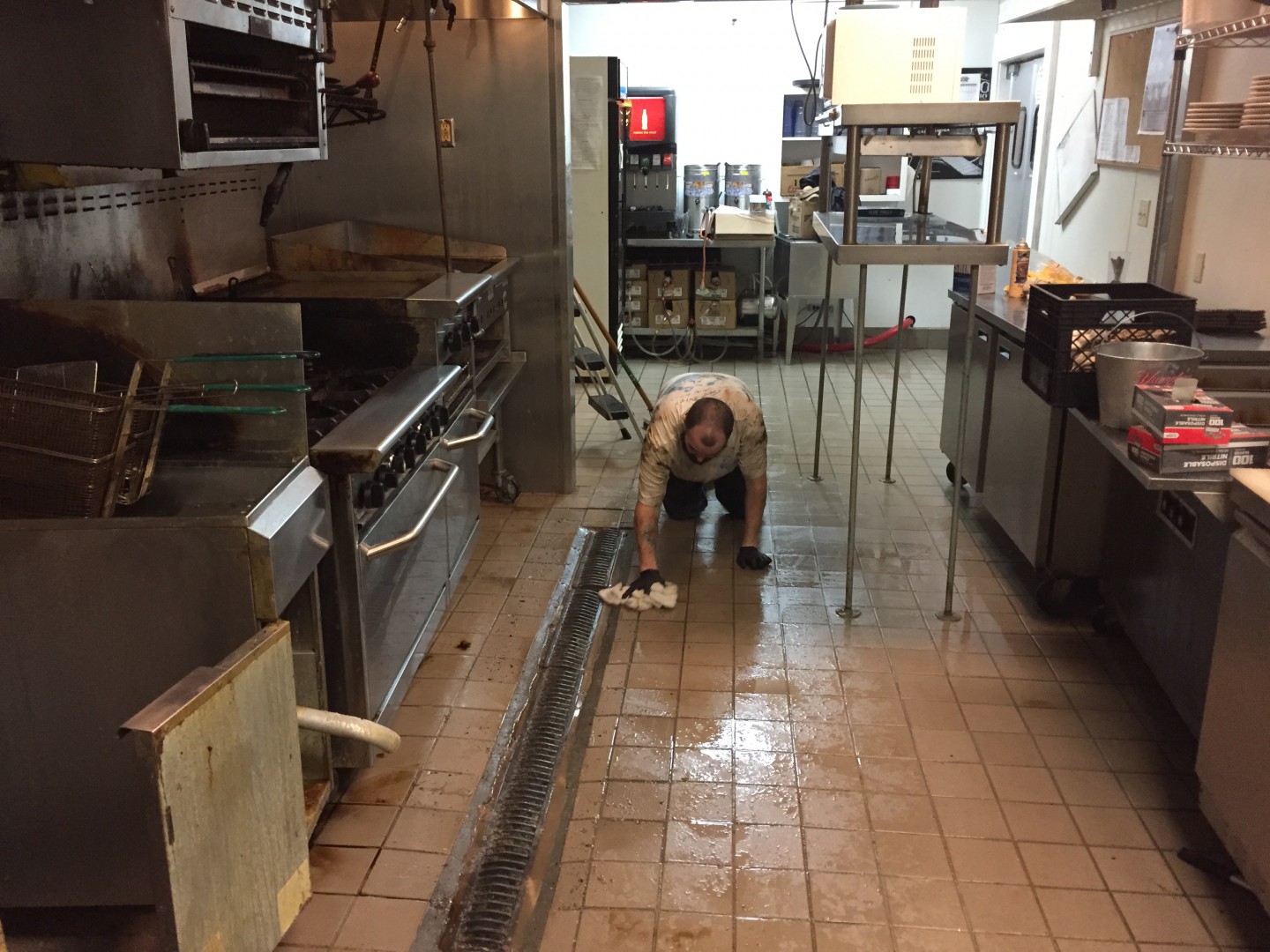 Had a restaurant suddenly lock their doors and leave the area 6-7 months ago. New lessor is putting in a new venue, using existing equipment, and had us come and clean. Old restaurant simply dumped their perishable food and left....so this kitchen had been sitting for six months. Took a crew of four of us 8 hours on this monster. Obviously the old tenants weren't too worried about cleanliness!