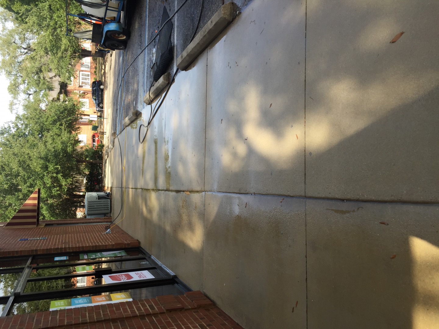 We have soft washed the exterior of this brick, and used a light pressure washing on the concrete walkways. We love to make the campus of our national championship Florida State Seminoles look it's very best!