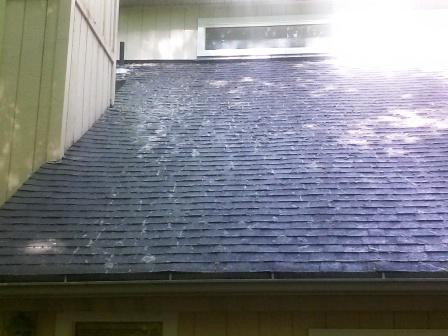 The roof was cleaned in a professional, safe and effective manner the same day as the customer called. As the photos indicate the black algae, rooted moss and lichen were completely eradicated from the roof using our proven non-pressure roof cleaning.
