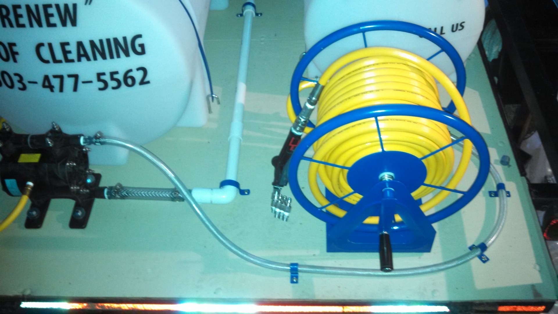 With Delevan 12 volt pumps I would use a maximum of 200' of 1/2" hose, which should fit these reel with no problem.