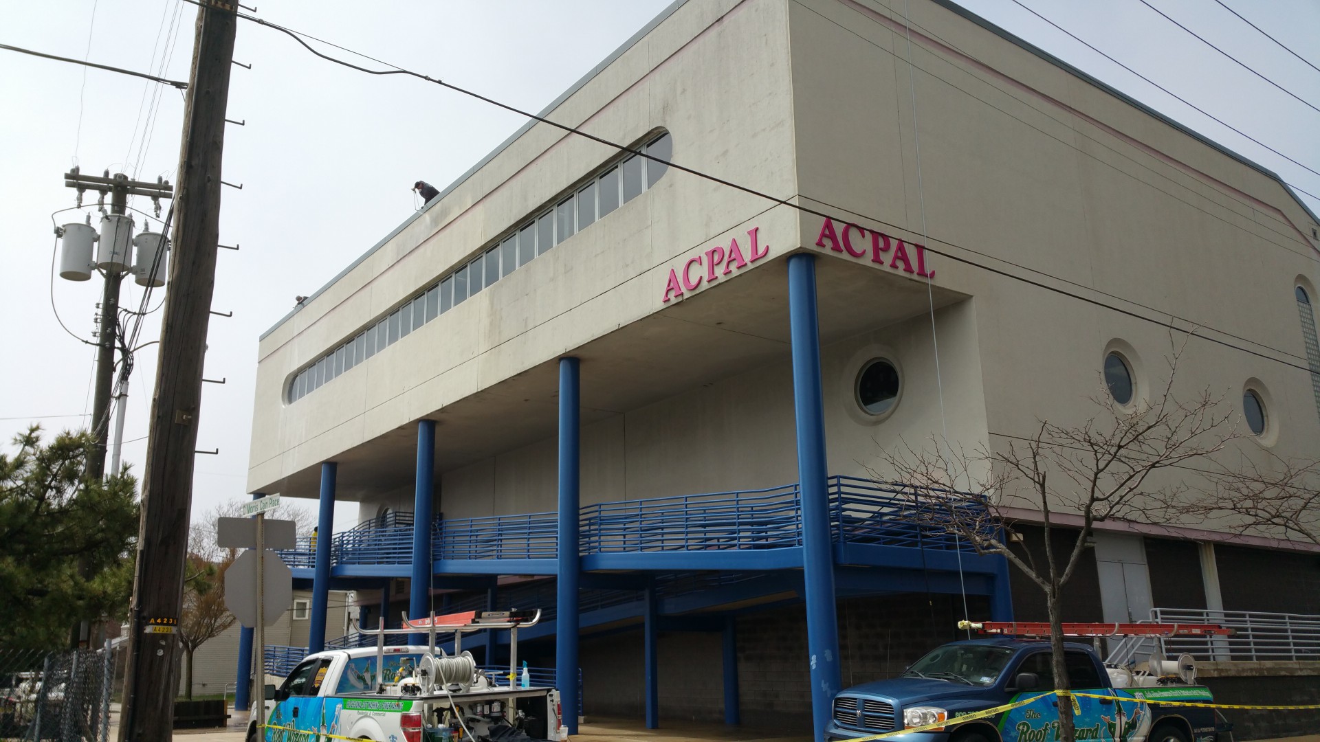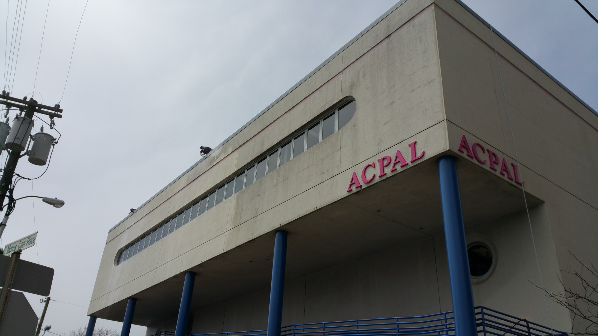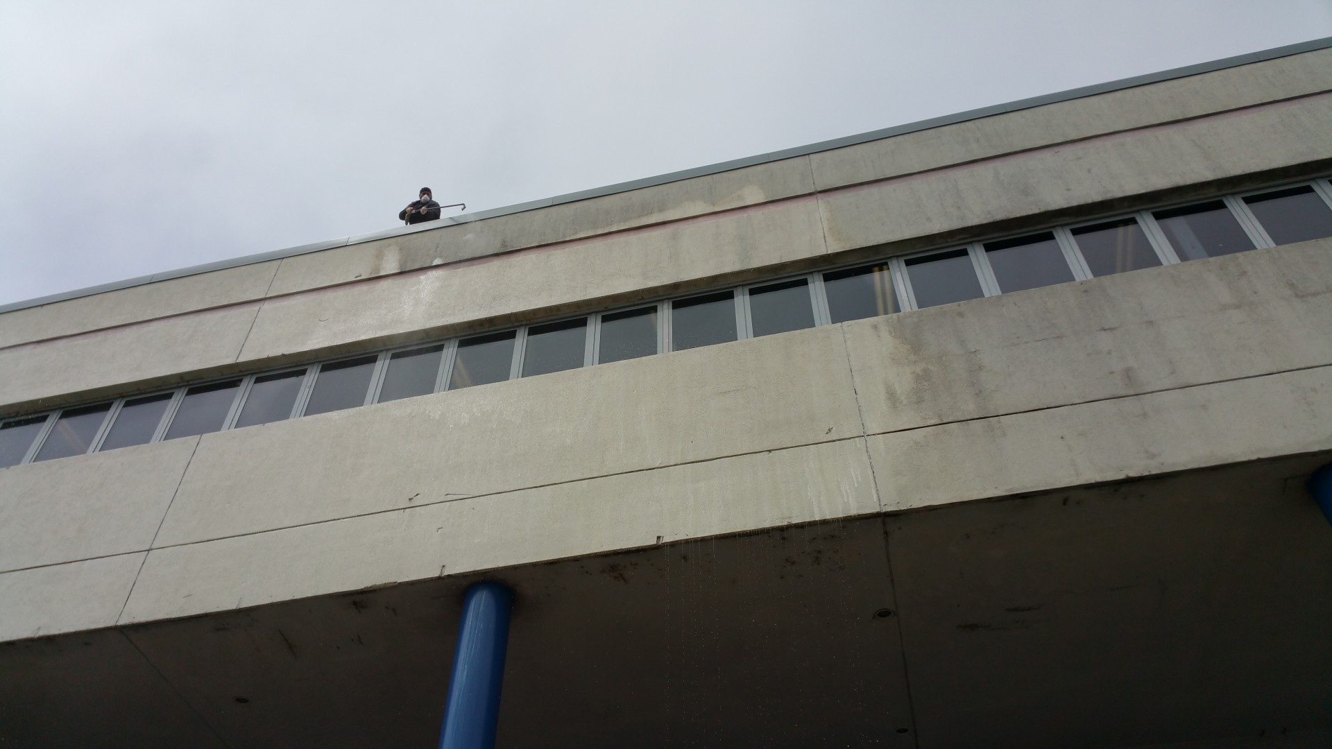 This past Monday The Roof Wizard and crew help out with the UAMCC "Wash With Us" initiative. To help kick off the UAMCC event in Atlantic City, we donated our cleaning services to softwash the local Police Athletic League. A few other UAMCC contractor also helped out and cleaned the Boys & Girls club, just up the street also. As you can see from the pictures, the building was dirty and in need of a good bath. The building was mostly Dryvit, with some concrete panels and split faced block here and there. It all cleaned up nice and even Senator Jim Whelan stopped out for a visit and to show his gratitude.