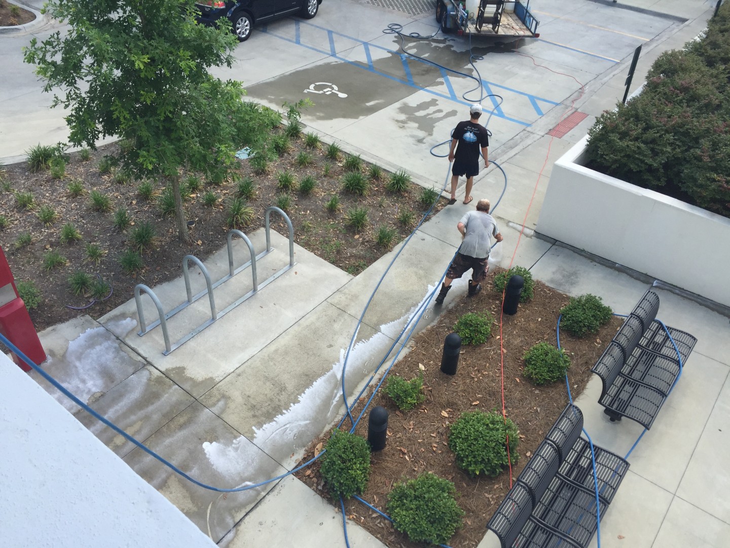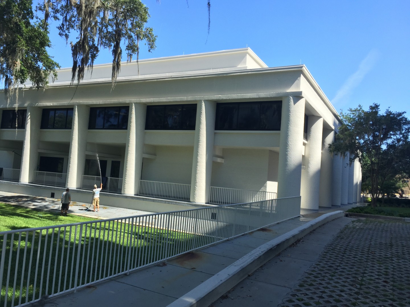 it's a gorgeous Saturday here in Tallahassee Florida and we are cleaning this building for Florida State University, The Advocacy Center. Andy Hinson of Alabama Pro Wash was gracious enough to come down of a few days and jump on a hose!