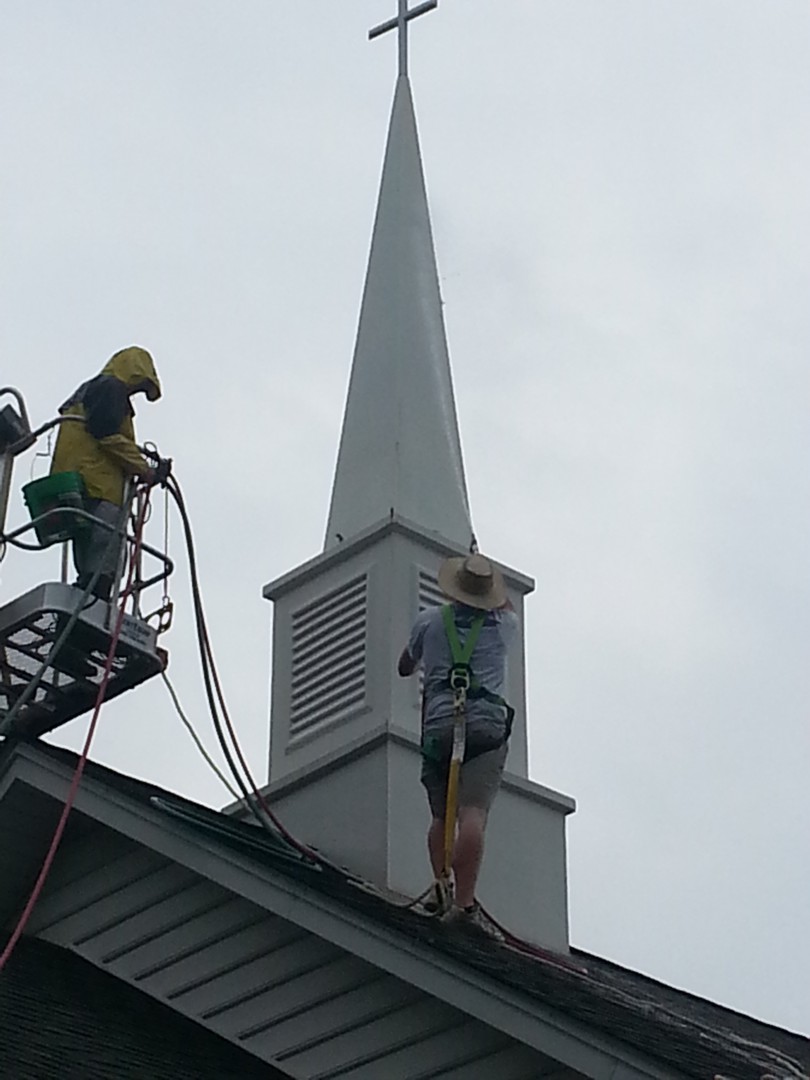 Wayside Baptist Church needed their steeple cleaned and painted. While we were there we cleaned the roof of their pavilion.