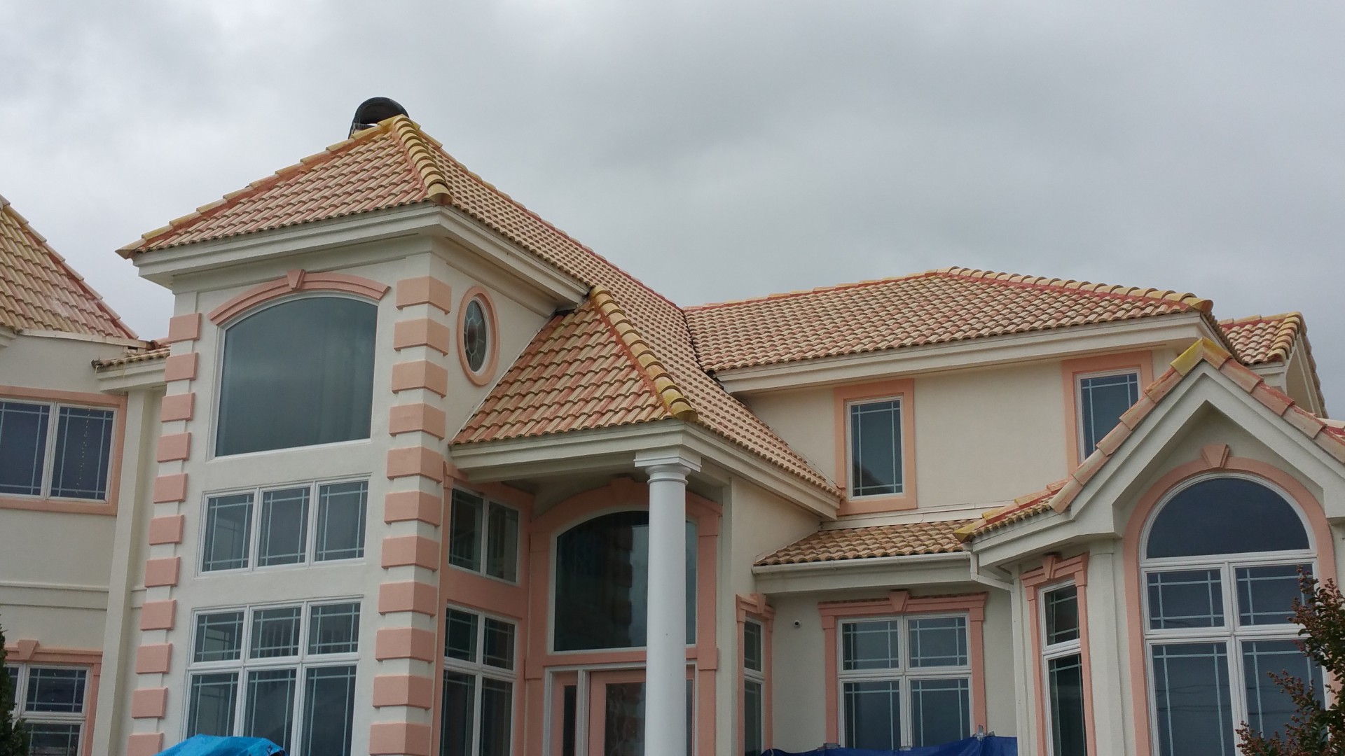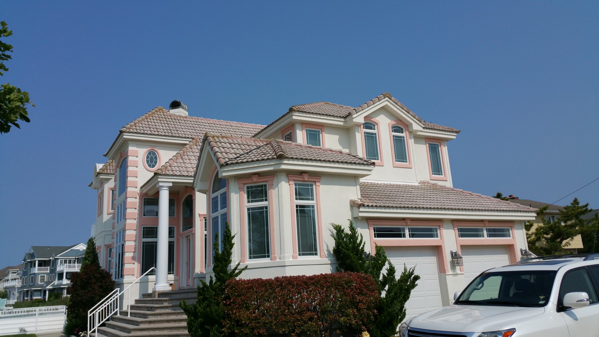 The Roof Wizard recently was hired to softwash this multi million dollar home, in Avalon NJ. The homeowner is putting the house up for sale in a few weeks and building another one across the street, about 100' closer to the bay. They had the roof pressure washed 18 months ago and were not happy with longevity or the amount of concrete residue runoff. The owner had to drain their pool after the last cleaning, due to the amount of concrete chunks and red pigment that had run off into it. The Roof Wizard crew was able to minimize and divert the runoff, with our softwash process, which consumes about 1/3 the water of pressure cleaning. We fought the on and off downpours of rain, and the constant 15-25 MPH winds, which is pretty typical on the Jersey Shore. As you can see in the pics, the roof was extremely infested, for just being washed 18 months earlier and the results were a dramatic change.