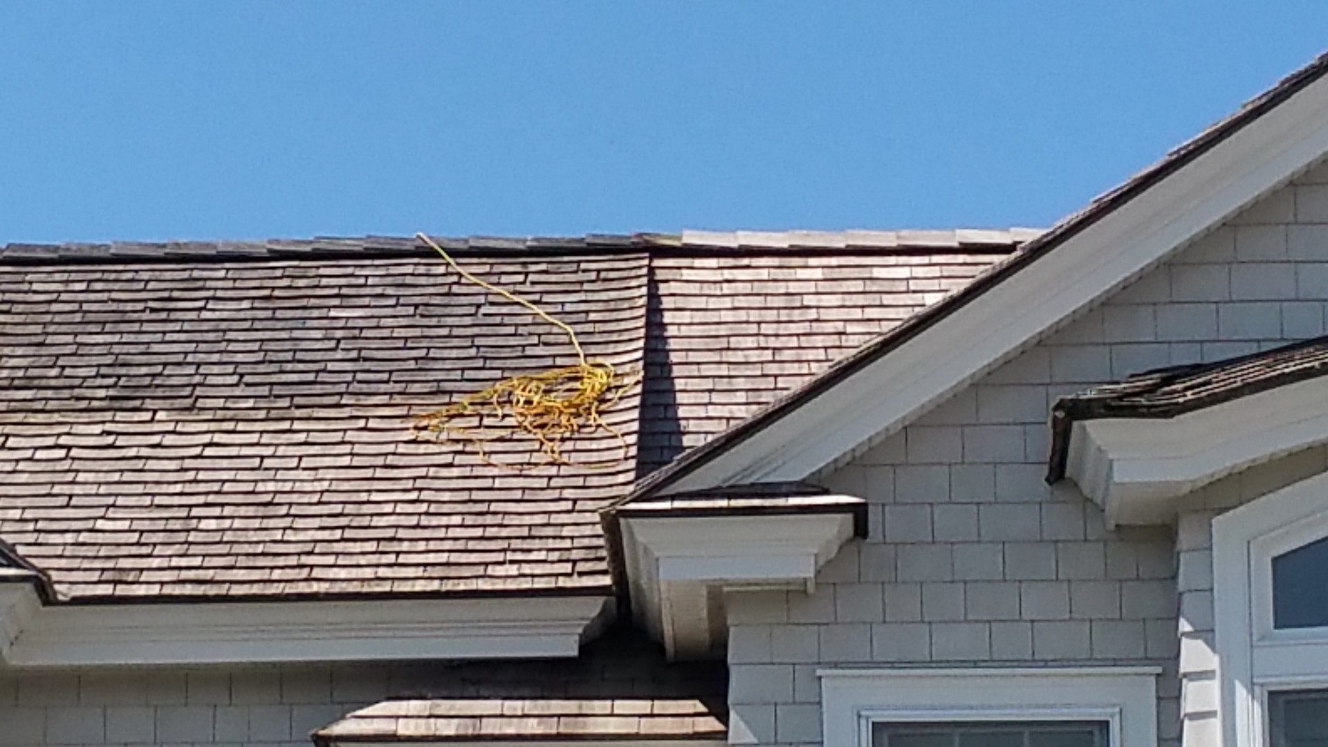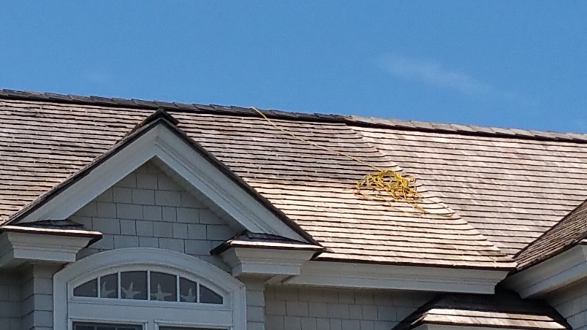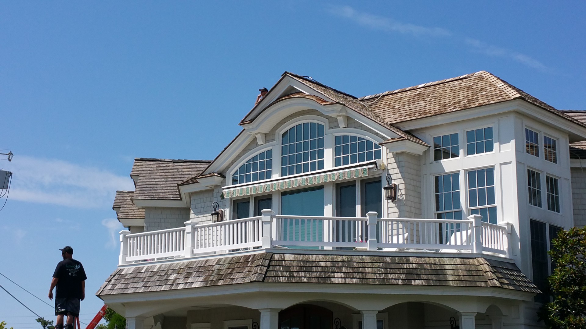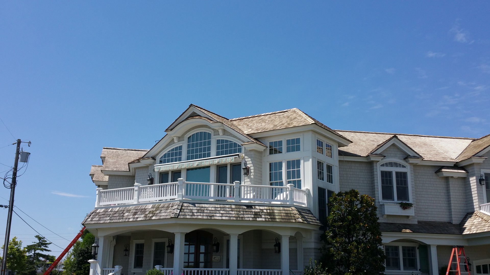 Today the Roof Wizard softwashed and restored this cedar shake roof and house in Stone Harbor, NJ. The homeowner is putting the house up for sale in the Fall and wanted it to look it's best. We washed the roof, house, three Mahogany decks, the Travertine tile pool deck, paver driveway and the windows. We used Wood Restore on the roof after rinsing the softwash solution, to neutralize and condition the cedar shakes. The results beyond the homeowners expectations and they will hopefully sell the house easily.