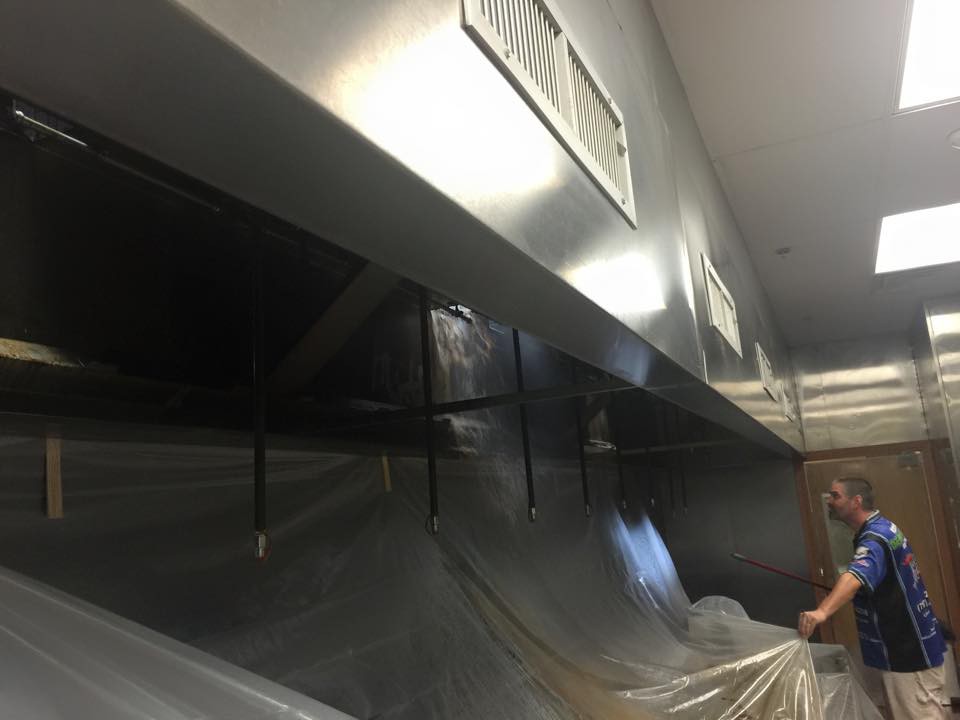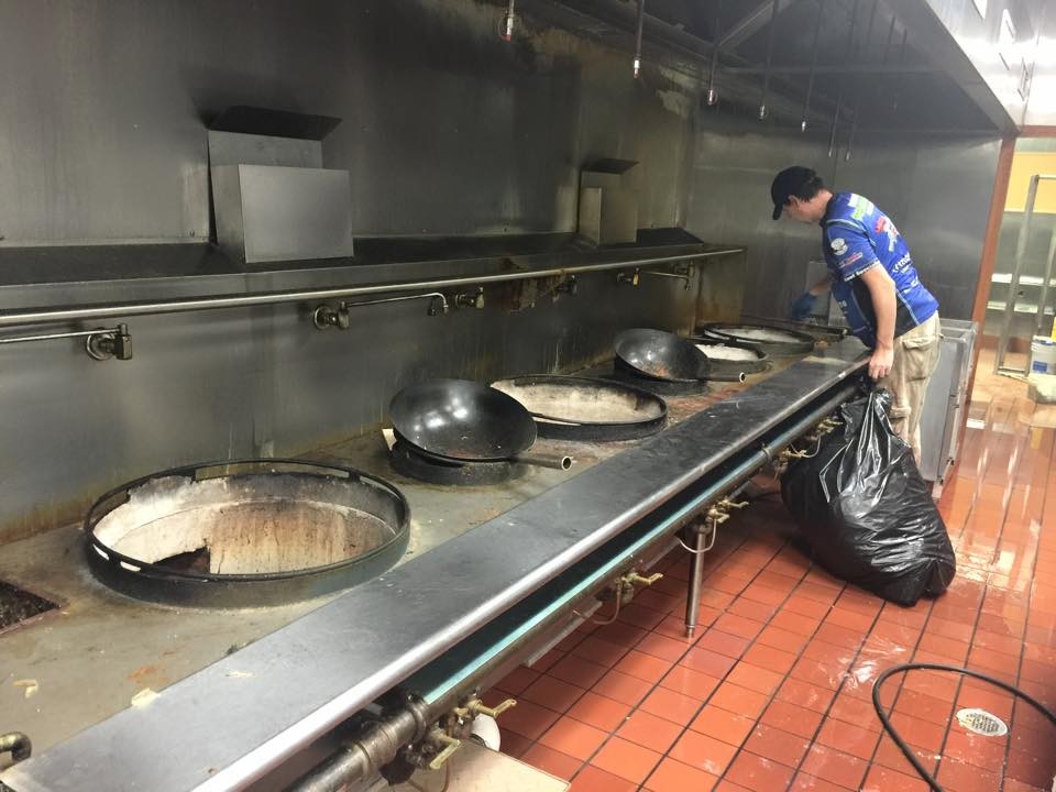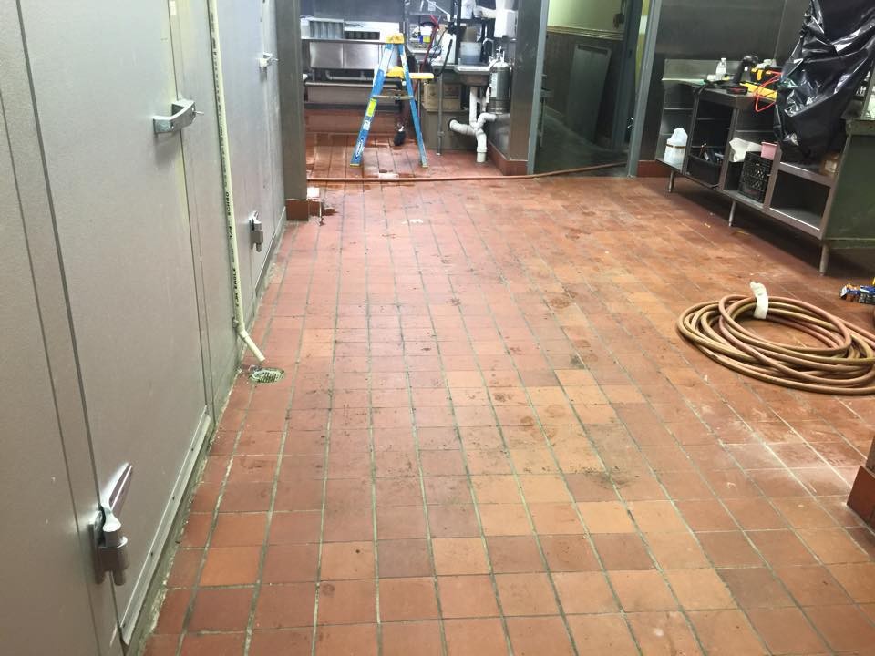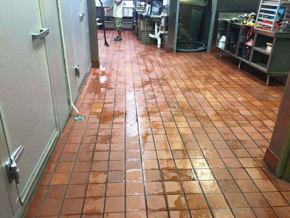 In addition to the hood system, we also cleaned the wok cook top and cleaned the entire terra-cotta tile floor. All our cleaning was done using a wash water recovery system which safely collected and discharged all the water collected dureing the cleaning process.