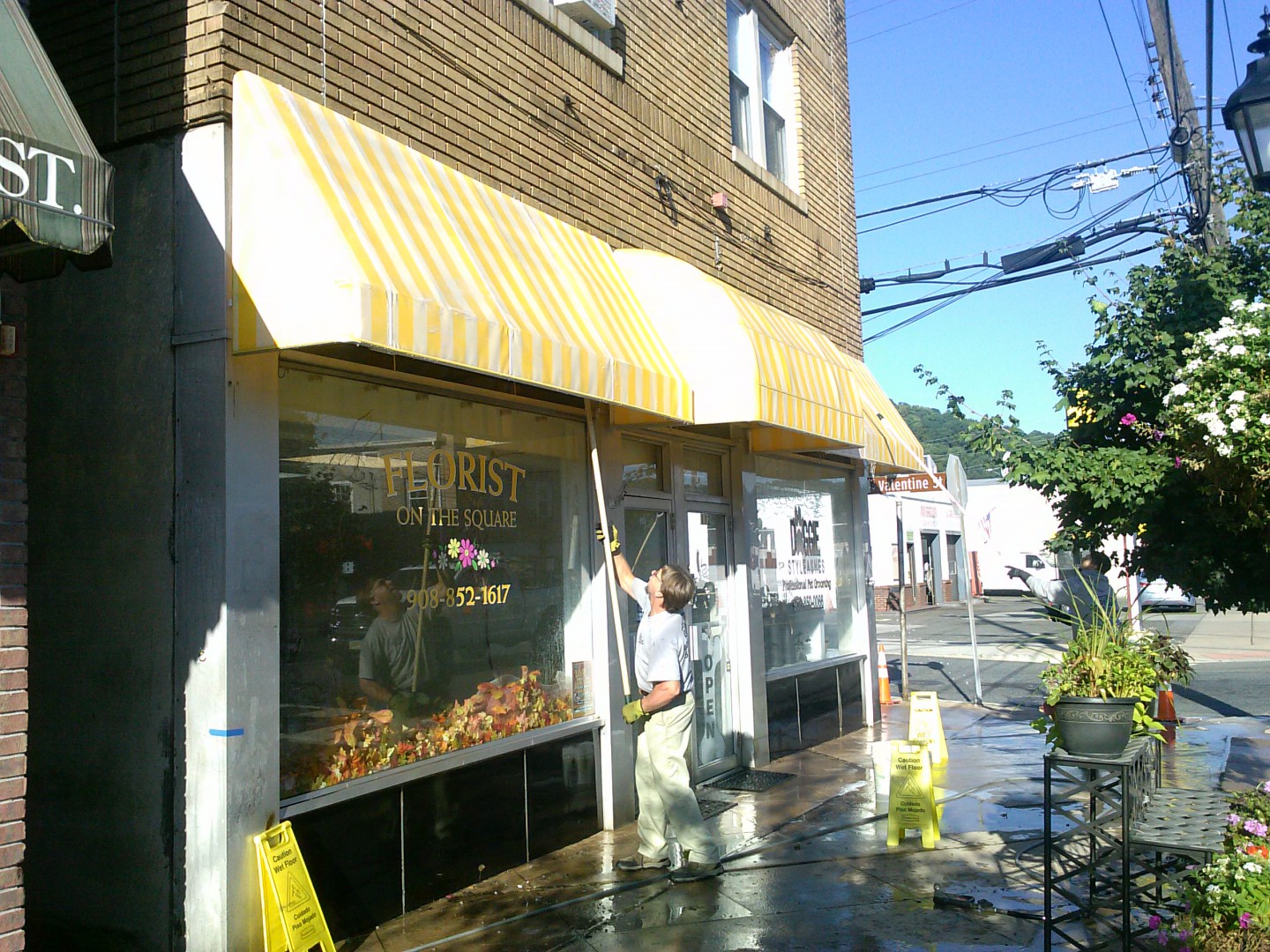 Ok so this joint wants power washing at this place as well. i stopped by and looked at one of the awnings...how could this have happened/ When it dried it looks better? photo one before two after cleaning number three today