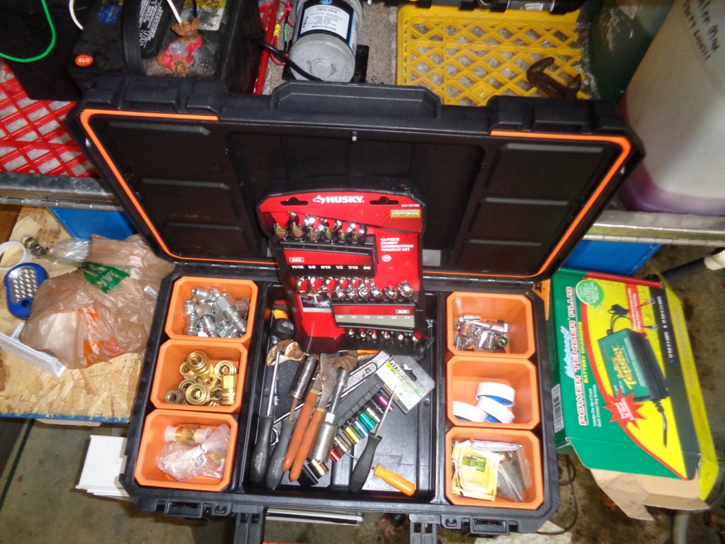 I just picked up this tool box at HD for $29. Its a strong box and it has a water tight seal. I plane on getting everything I need in it in case of a brake down. Tools, Supply's everything. I don't like down time!