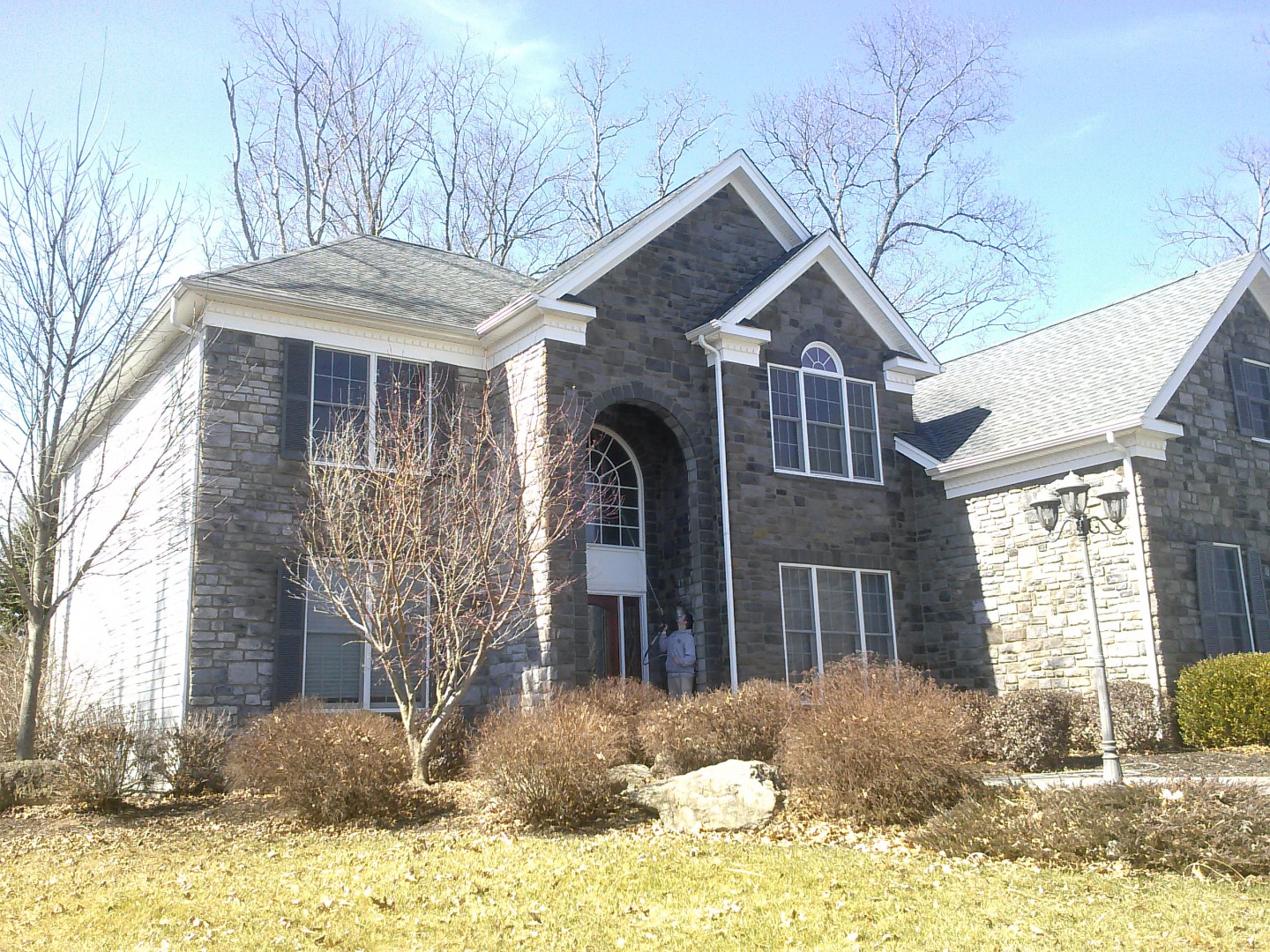 This home located in Great Bear Golf and Country Club, which is located in East Stroudsburg PA was recently sold. The new homeowners wanted the exterior cement fiber board and stonework thoroughly cleaned. After several disappointing meetings with other so called contractors the staff at Pocono Non-Pressure Roof & Exterior Cleaning was called. We took the time to walk the property with the new homeowner explaining our soft washing methods to remove green and black algae, cobwebs, dirt, etc. As can be seen in the attached photos our commercial grade equipment easily reached the 3rd story peaks leaving the fascia, soffit and gutters free of algae.